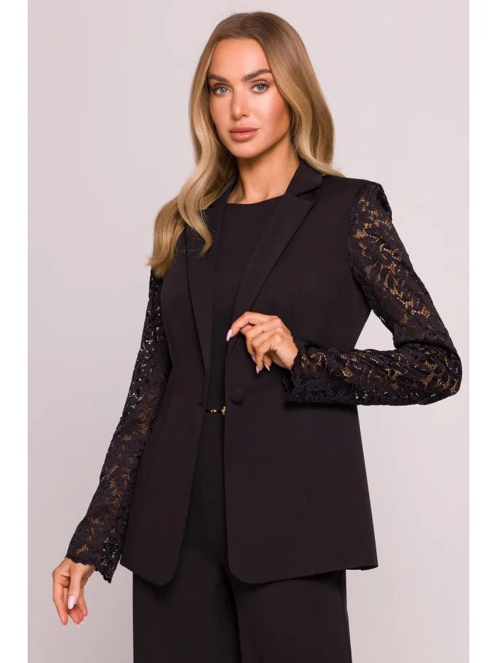 Blejzr s krajkovými a jedním knoflíkem černý model 21136217 - Moe