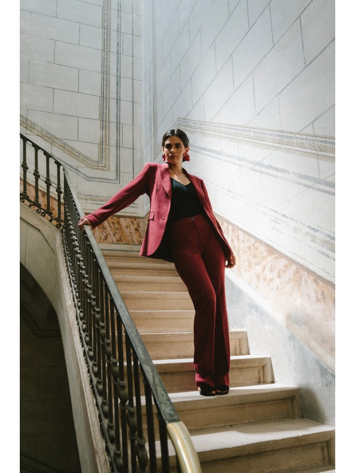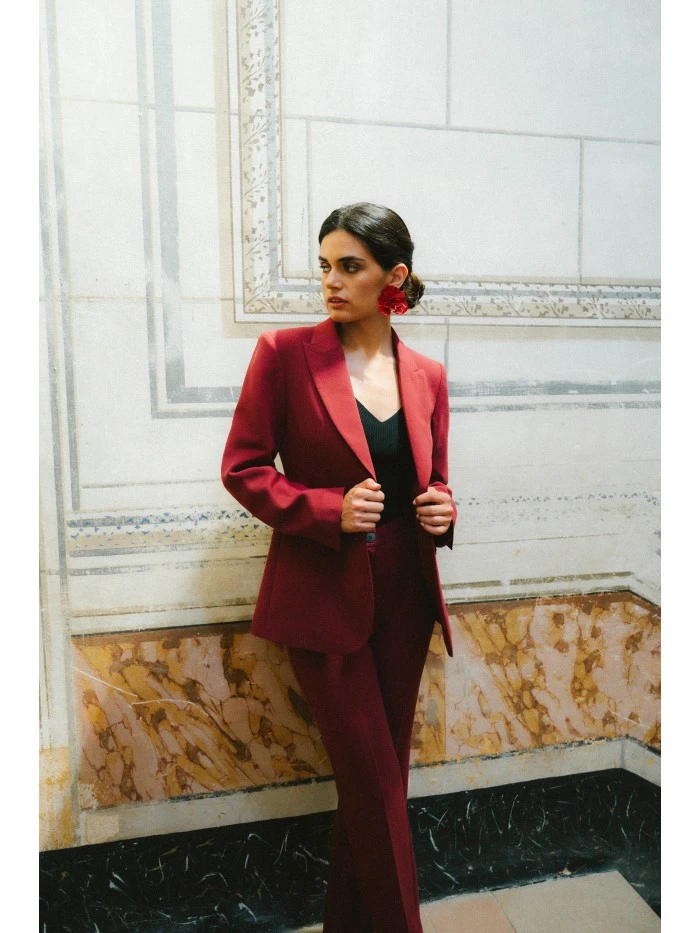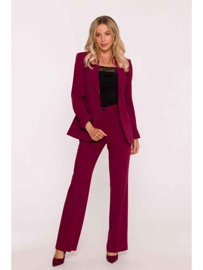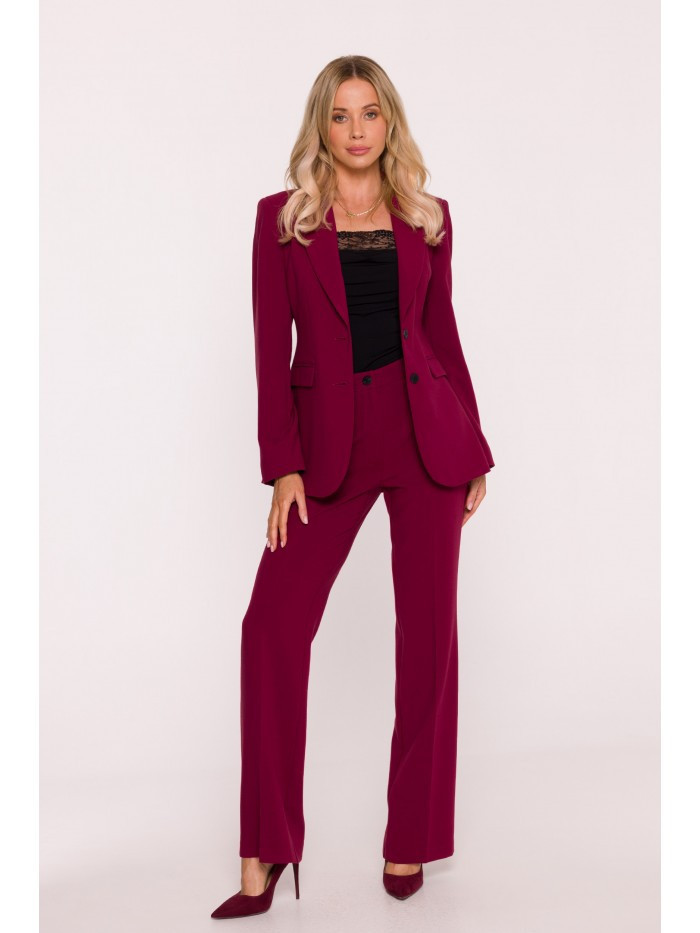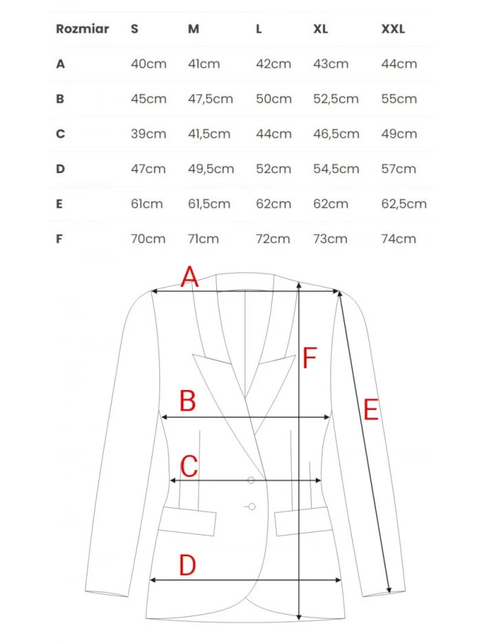 HLAVNÍ LÁTKA 63% polyester 33% viskóza 4% elastan PODŠÍVKA 100% polyester LÁTKA: hladká tkaná látka s jemným povrchem PODROBNOSTI O PRODUKTU Límec: klasický s ručně zakončenými klopami Zapínání: jednořadové, na knoflíky Pas: výrazně vypasovaný se záševky vpředu i vzadu Rukávy: dlouhé, úzké Podšívka: plně podšitá Model: S417 Navrženo a vyrobeno v Polsku Modelka měří 174 cm a nosí velikost S STYL A STŘIH Styl: jednořadové sako, výrazně vypasované v pase Tvar: rovný s jasně ohraničenou linií pasu Délka: pod linii boků
