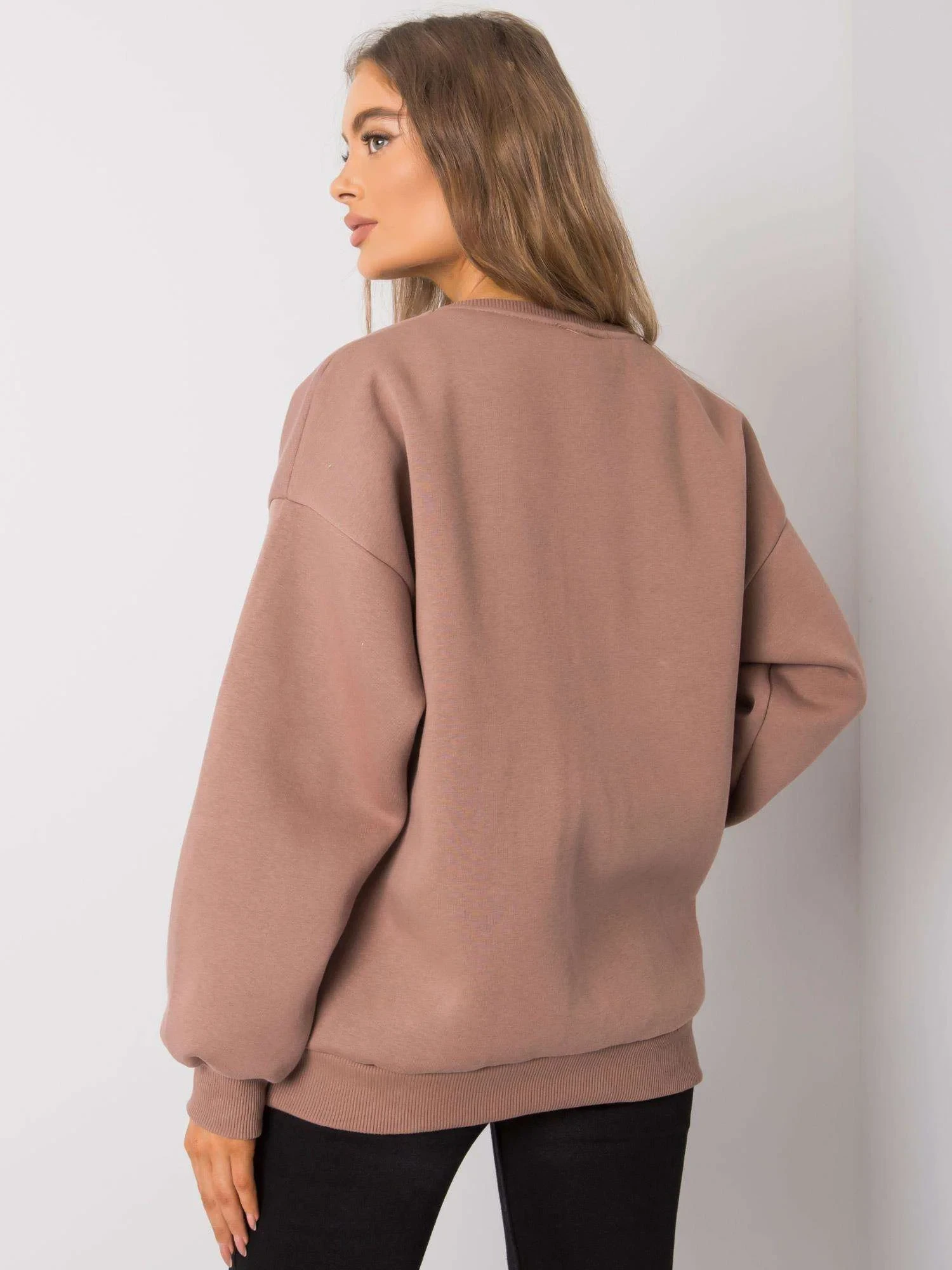 Ciemnobeżowa bluza bez kaptura.