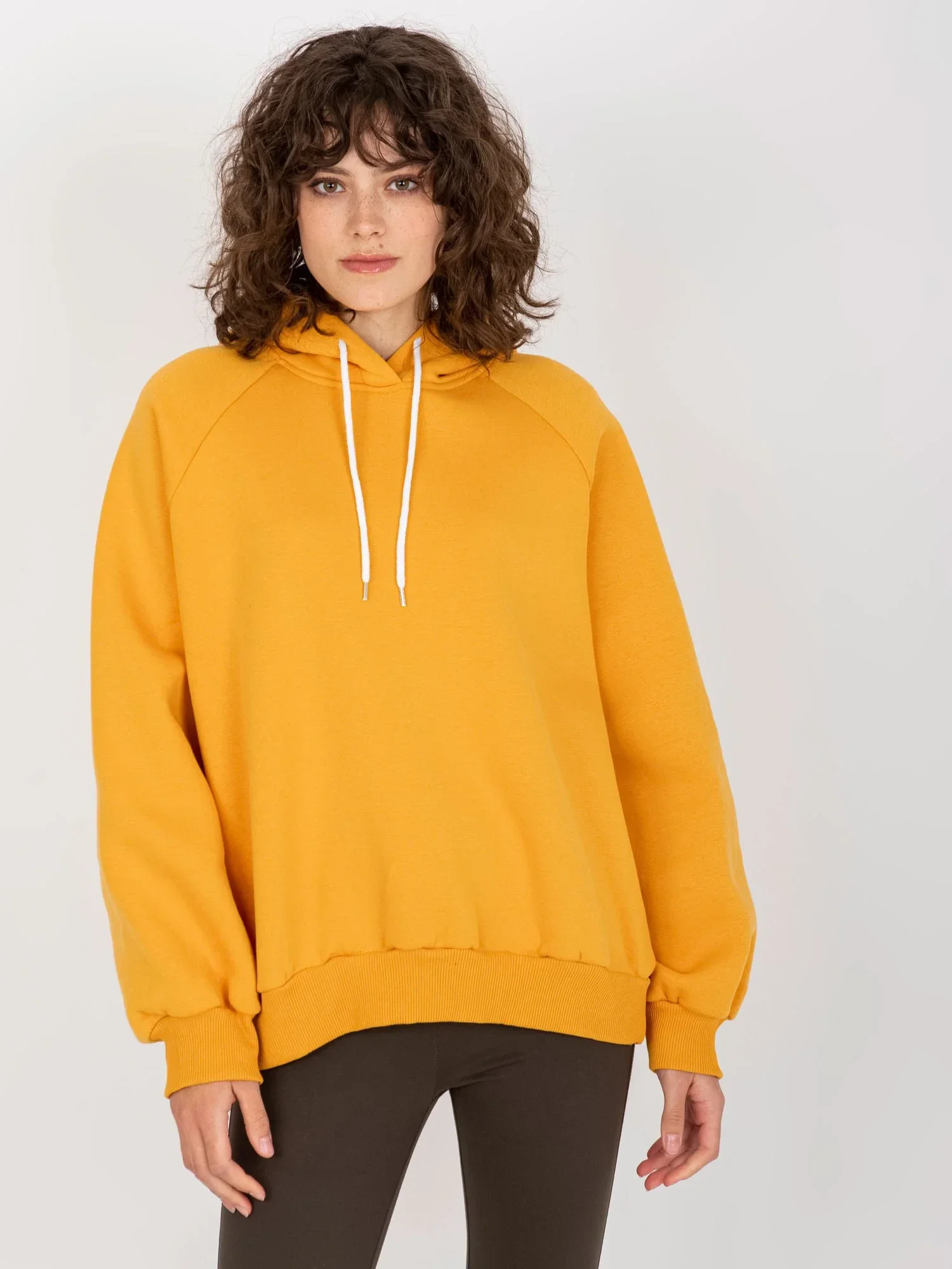 Ciemnożółta dresowa bluza z nadrukiem na plecach .