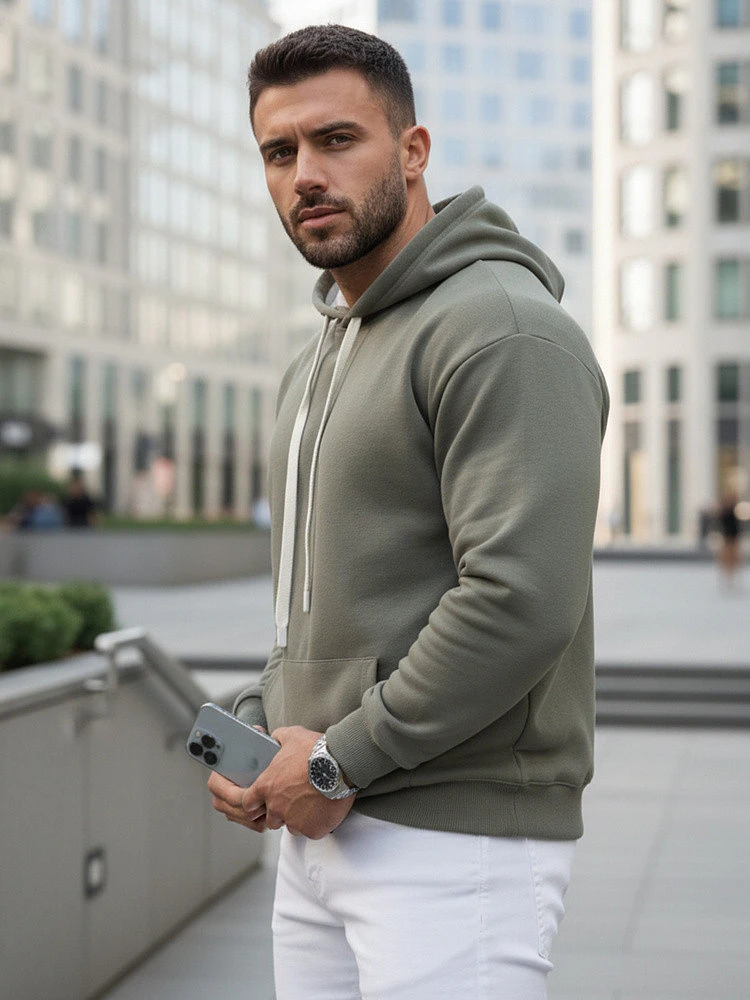 Bluza o swobodnym, codziennym charakterze sprawdzi się w miejskich i sportowych stylizacjach. Wygodny krój oraz miękki materiał zapewniają komfort podczas noszenia na co dzień. Kaptur i kieszeń typu kangurka zwiększają funkcjonalność, a ściągacze pomagają utrzymać dobre dopasowanie. Kontrastowe wykończenie przy kapturze i sznurkach dodaje całości nowoczesnego wyglądu.