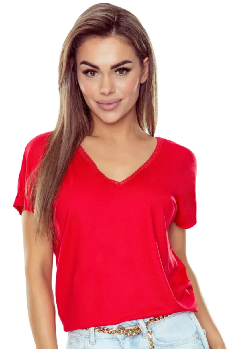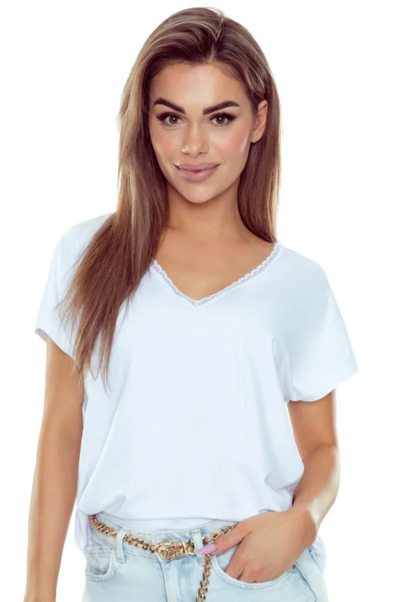 Miriam to bluzka damska marki Eldar, która łączy klasyczną prostotę z kobiecą elegancją. Subtelne koronkowe zdobienia oraz krótkie rękawy nadają jej lekkości i stylowego charakteru. Materiał składający się z wiskozy, elastanu i poliamidu zapewnia nie tylko przyjemność noszenia, ale także idealne dopasowanie do sylwetki. Bluzka Miriam to doskonały wybór zarówno na co dzień, jak i na bardziej formalne okazje – zawsze tam, gdzie chcesz wyglądać zjawiskowo i czuć się komfortowo.