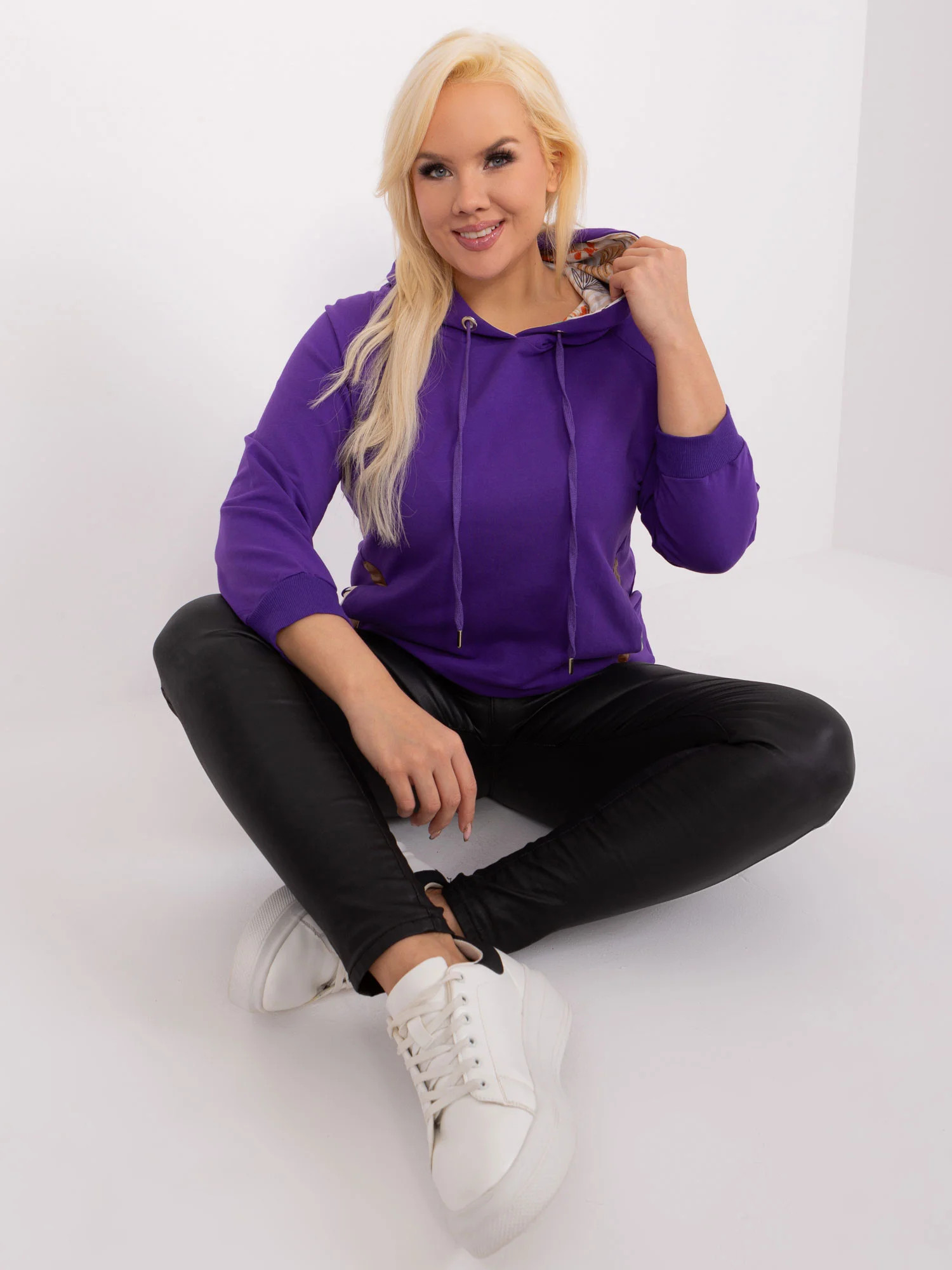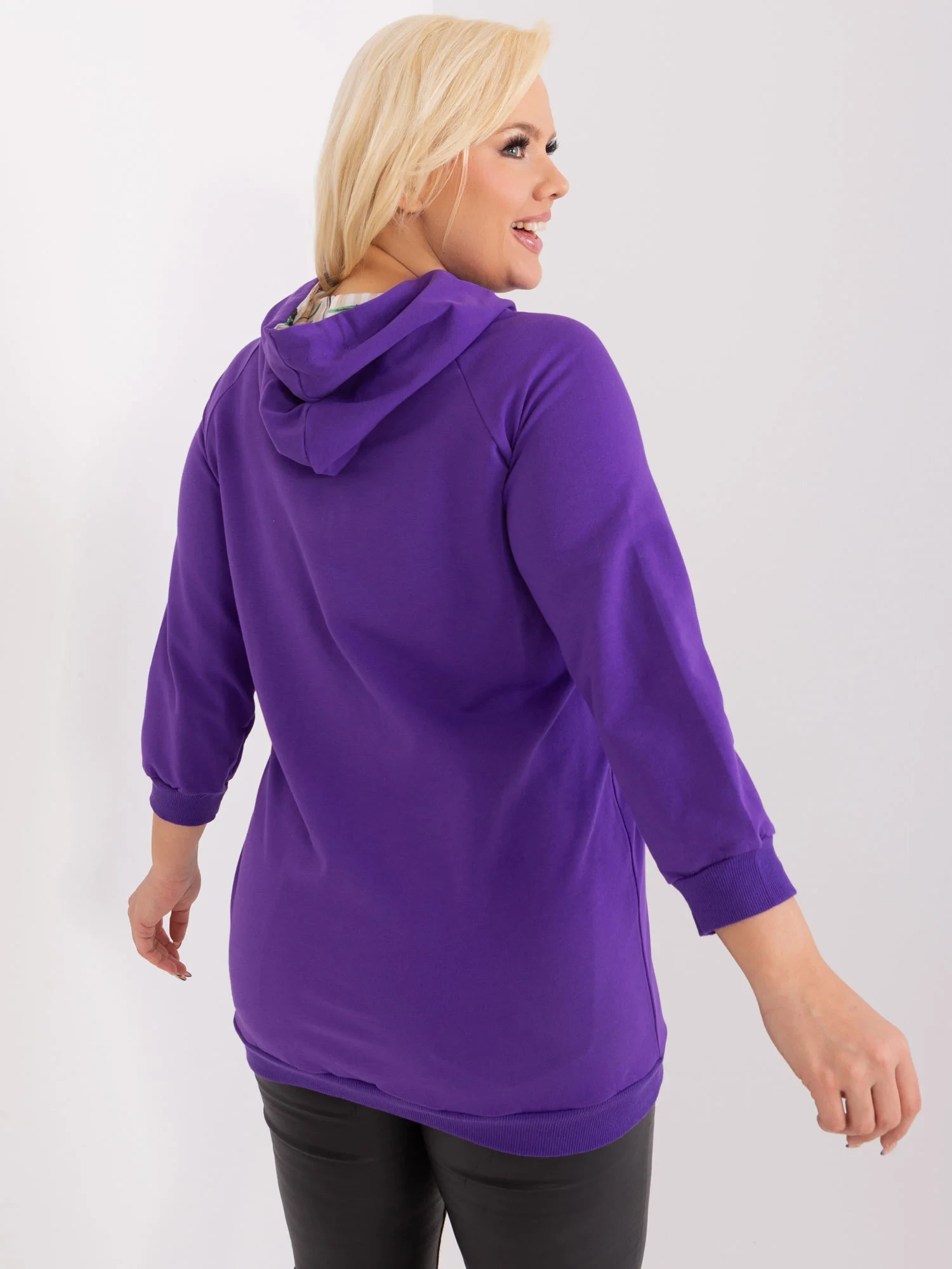 Wymiary bluzy w rozmiarze one size mierzone na płasko: szerokość pod pachami - 58 cm, długość rękawa - 50 cm, długość całkowita - 73 cm .