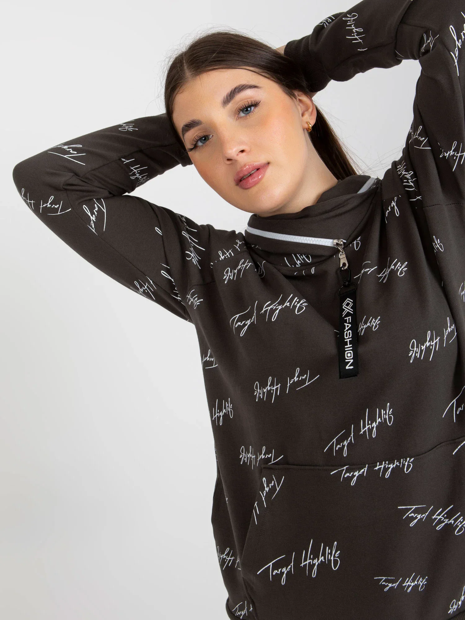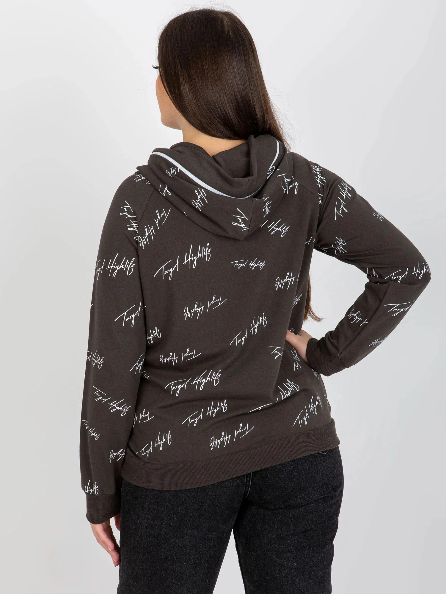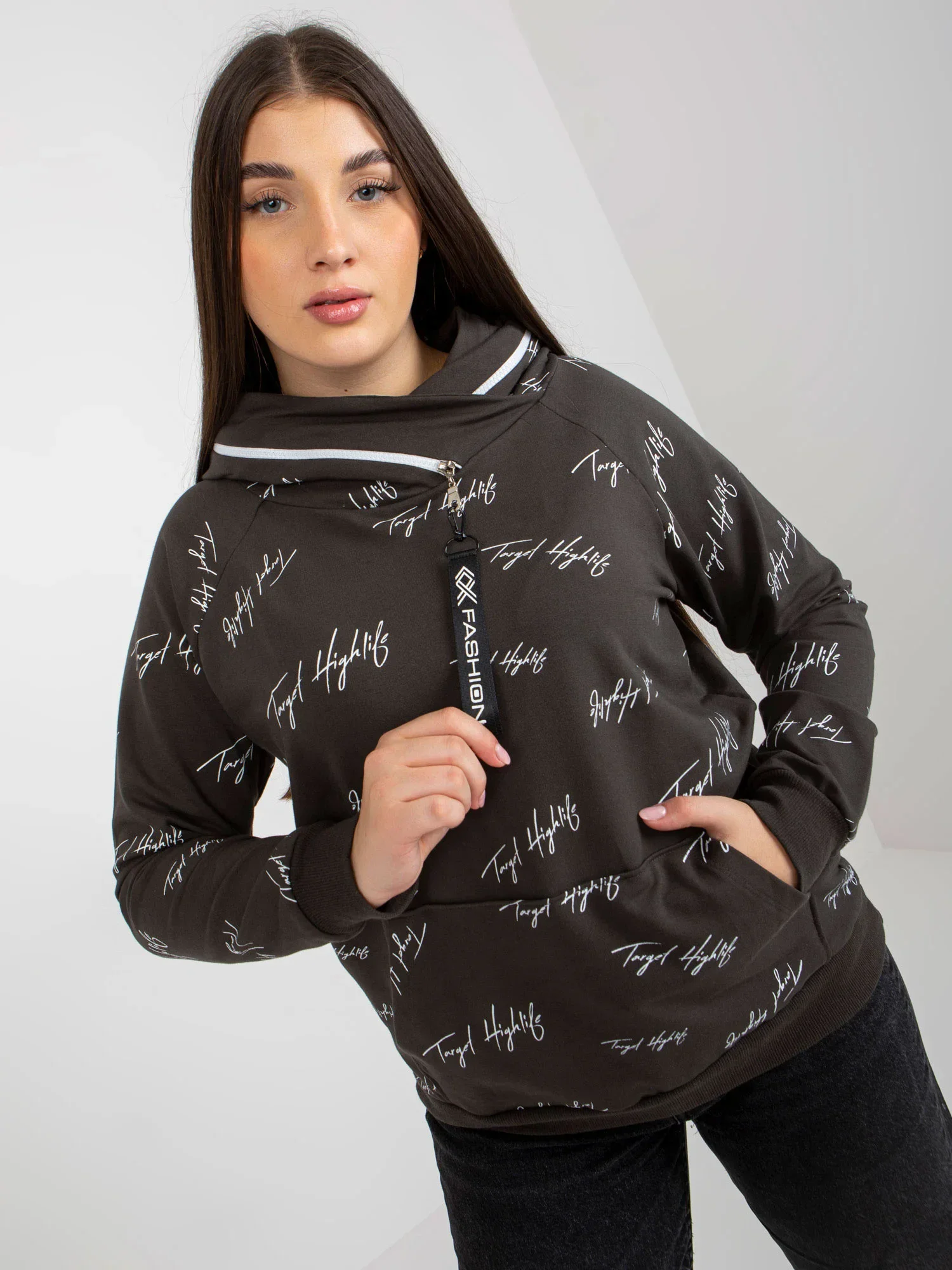 Khaki damska bluza plus size z kapturem i nadrukiem .