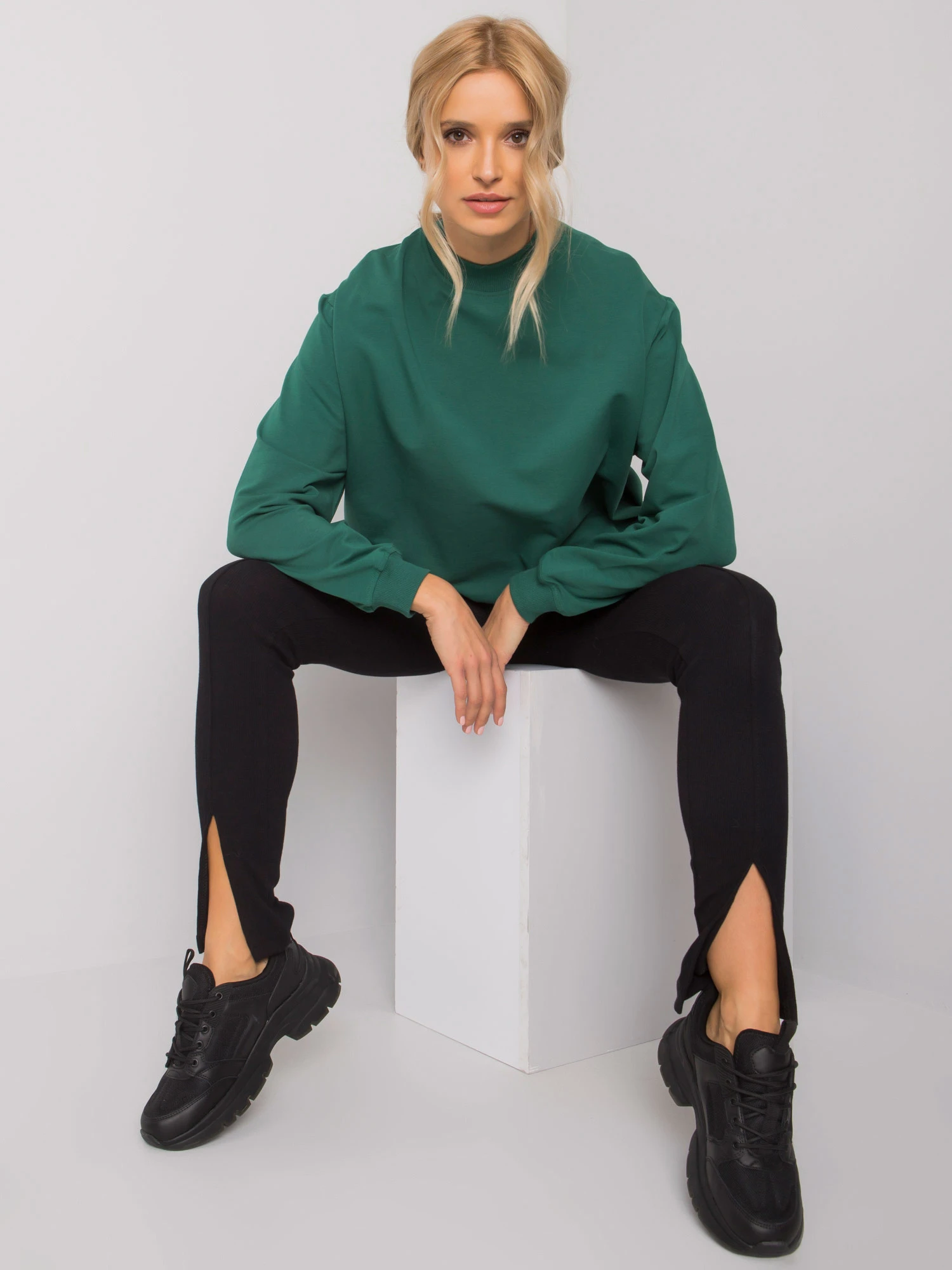 Ciemnozielona bawełniana bluza basic.