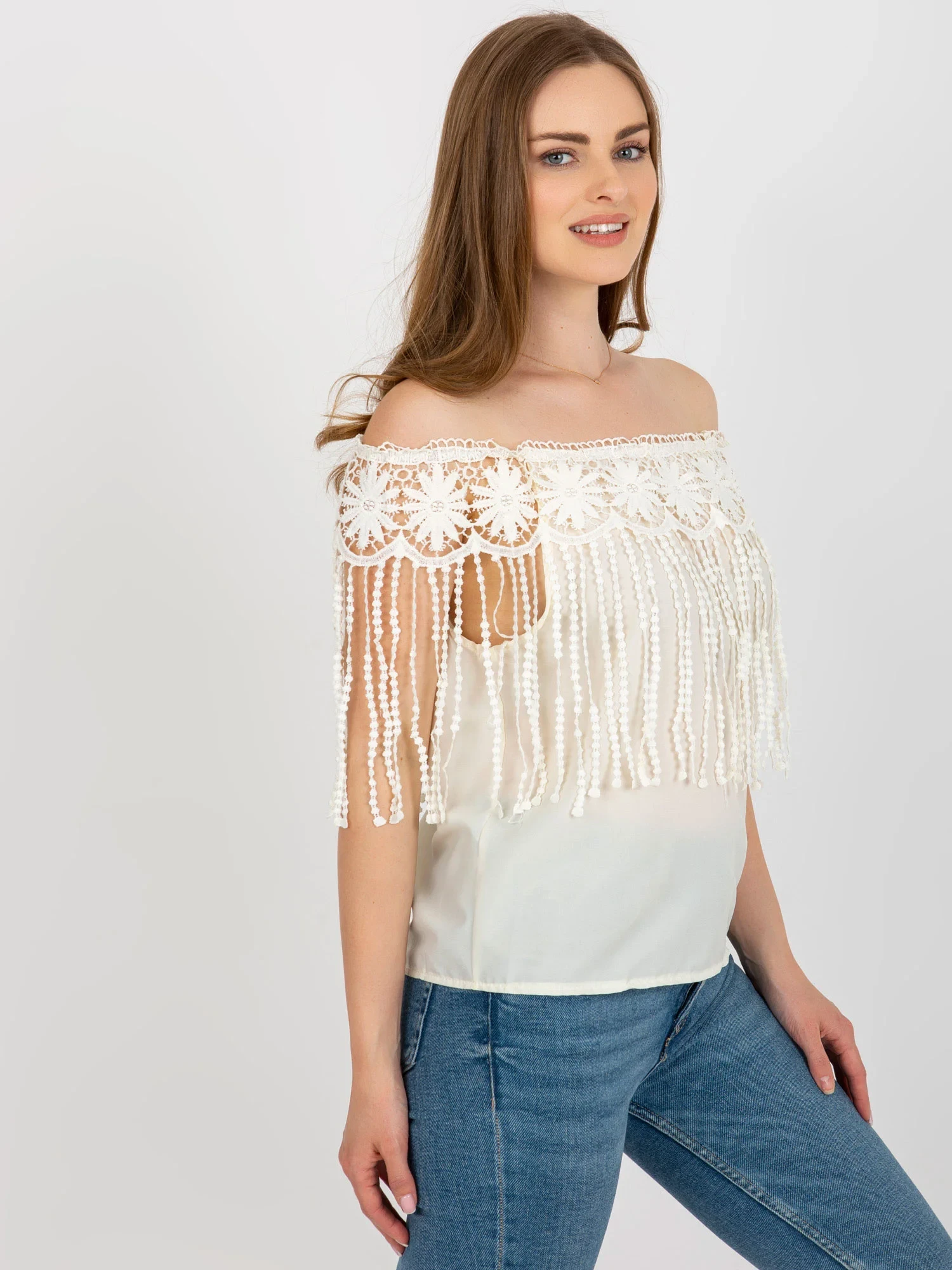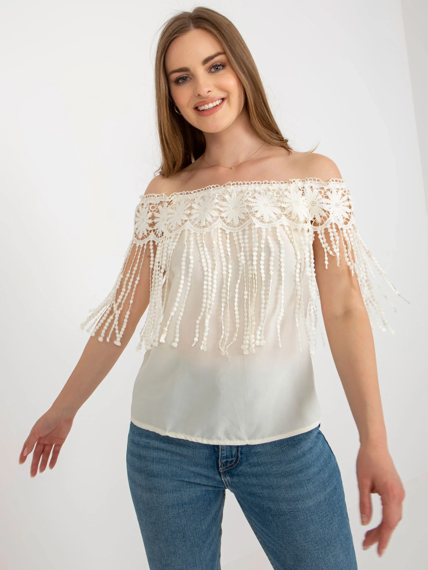 Wymiary bluzki w rozmiarze S/M mierzone na płasko: szerokość pod pachami - 50 cm, długość całkowita - 55 cm.