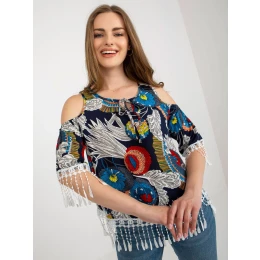 Wymiary bluzki w rozmiarze one size mierzone na płasko: szerokość pod pachami - 51 cm, długość rękawa - 40 cm, długość całkowita - 64 cm.