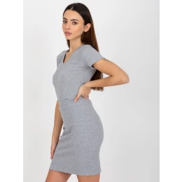 Szara prążkowana bluzka basic z dekoltem w serek .