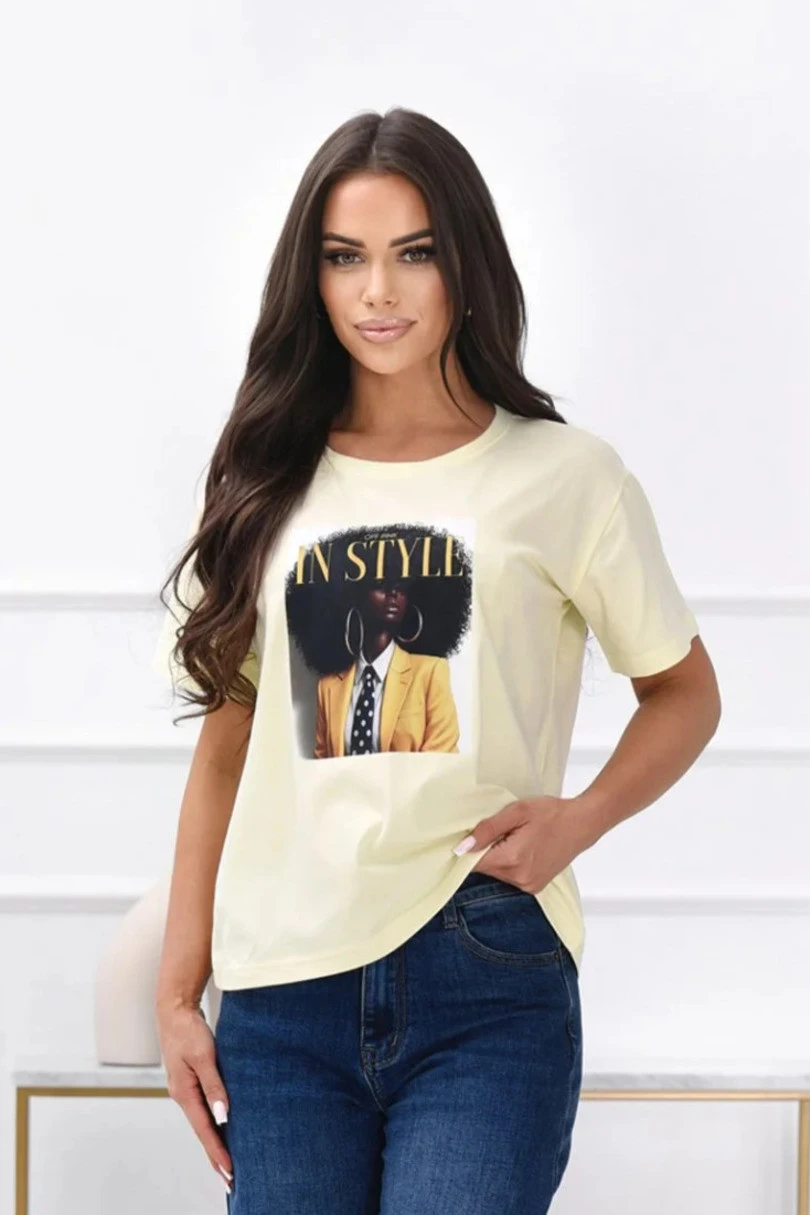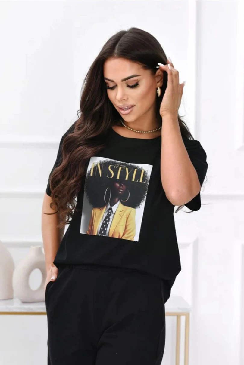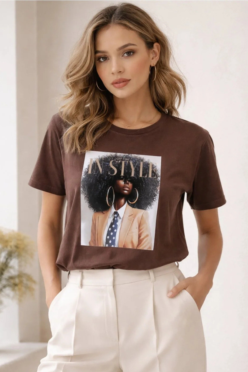 T-shirt damski Imani z dużym nadrukiem to doskonałe połączenie wygody, stylu i nowoczesnego designu. Model o prostym, klasycznym kroju świetnie dopasowuje się do sylwetki, zapewniając pełną swobodę ruchów oraz komfort noszenia przez cały dzień. Koszulka została wykonana z wysokiej jakości dzianiny bawełnianej z dodatkiem elastanu, dzięki czemu materiał jest miękki w dotyku, oddychający i delikatnie elastyczny. Duży, modny nadruk nadaje koszulce charakteru i sprawia, że idealnie wpisuje się w casualowe oraz sportowe stylizacje. T-shirt Imani doskonale komponuje się z jeansami, legginsami czy krótkimi spodenkami, tworząc stylowy i wygodny zestaw na co dzień, spacer, spotkanie ze znajomymi czy aktywny dzień w mieście. To świetny wybór dla kobiet, które cenią wygodę, modny wygląd i wysoką jakość wykonania.