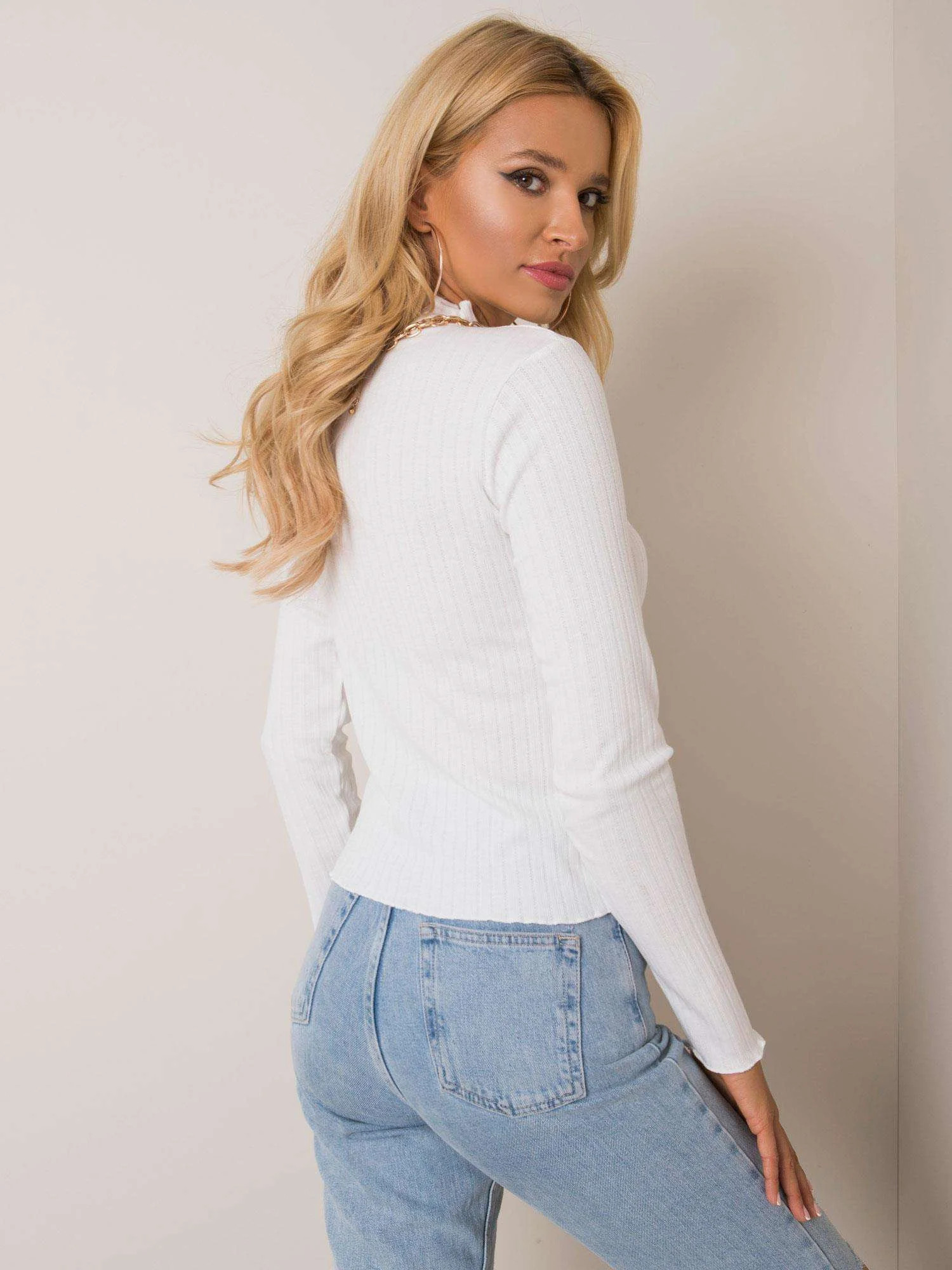 SUBLEVEL Biała bluzka damska z długim rękawem.