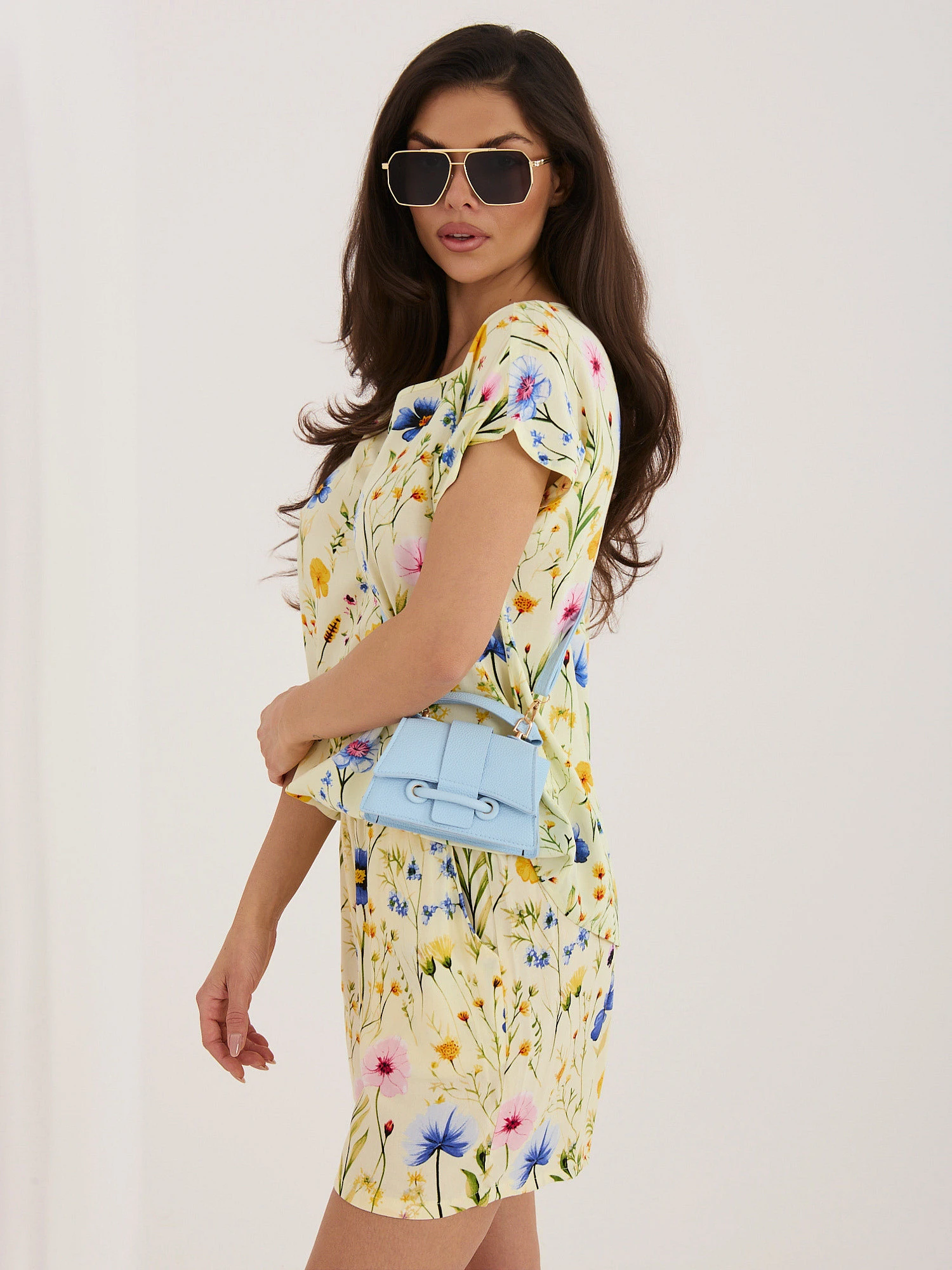Modelka ma na sobie rozmiar S. Wymiary modelki: wzrost 173 cm, biust 85 cm, talia 62 cm, biodra 95 cm .