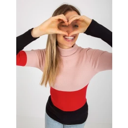 Jasnoróżowo-czarna bluzka basic z golfem w prążek .