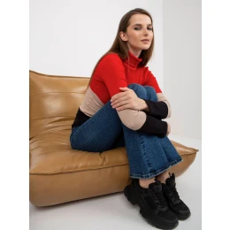 Czerwono-czarna prążkowana bluzka basic z golfem .