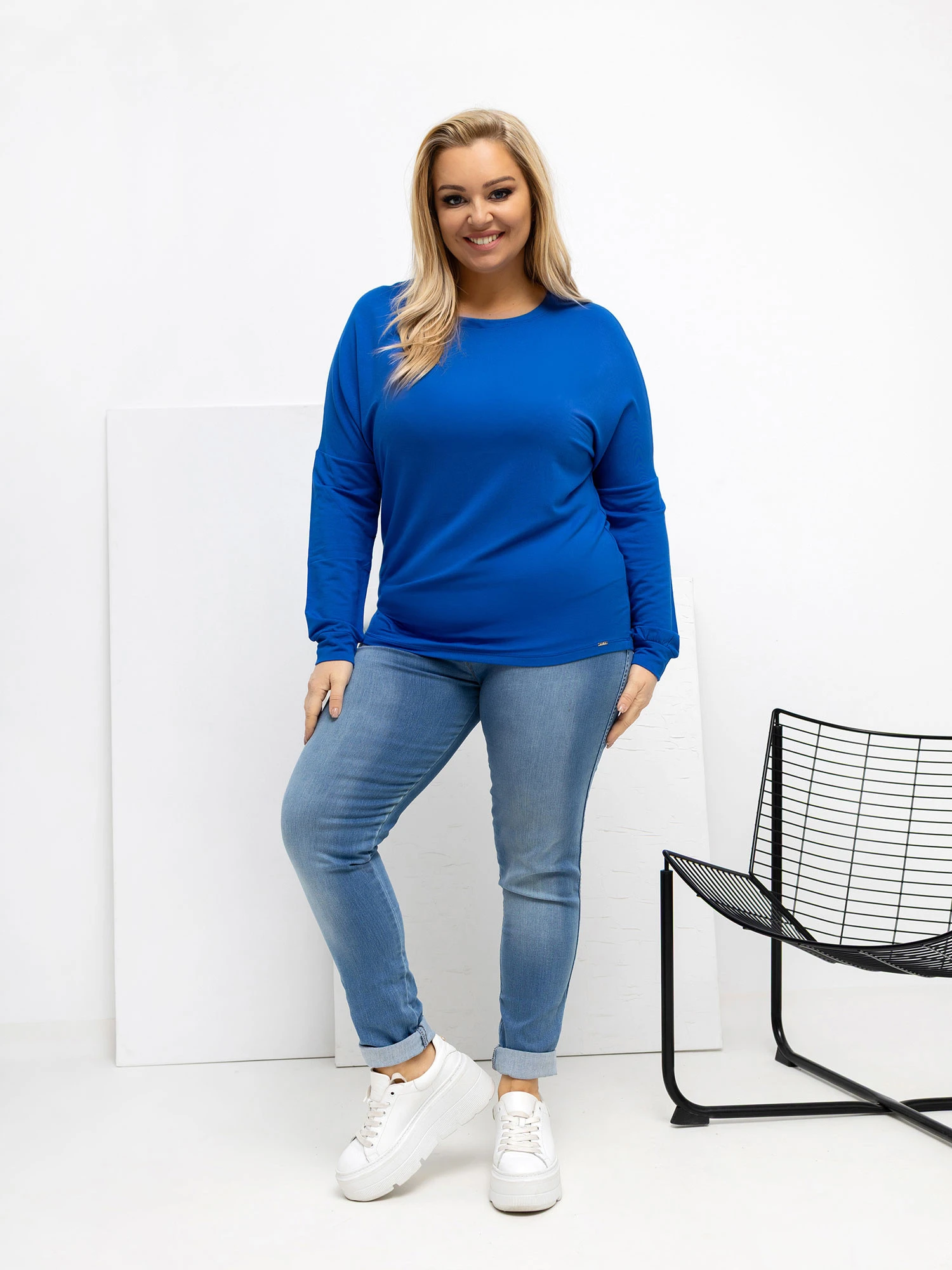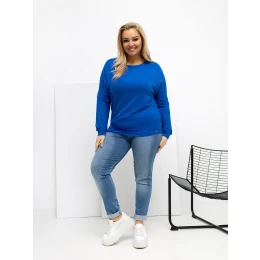 Wymiary bluzki w rozmiarze one size mierzone na płasko: szerokość pod pachami - 65 cm, szerokość na dole - 51 cm, długość rękawa - 35 cm (od szwu), długość całkowita - 67 cm.