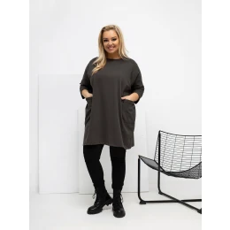 Wymiary bluzki w rozmiarze one size mierzone na płasko: szerokość pod pachami - 83 cm, szerokość na dole - 79 cm, długość rękawa - 44 cm, długość całkowita - 87 cm.