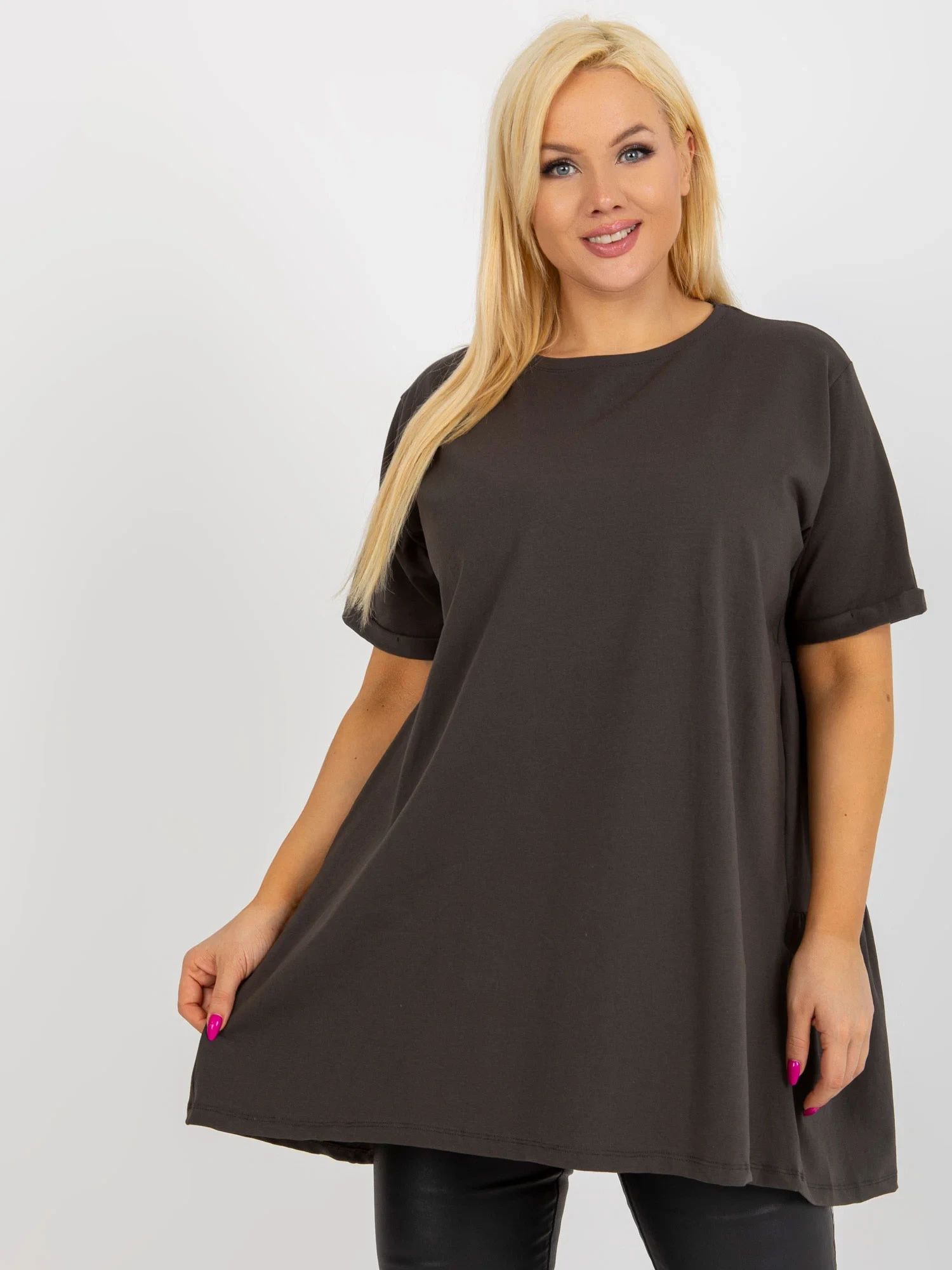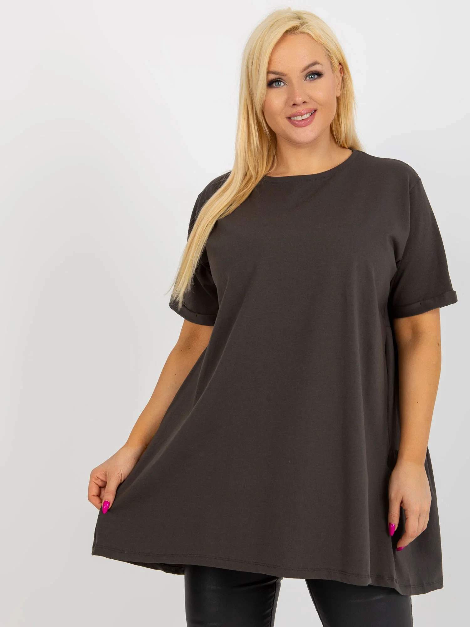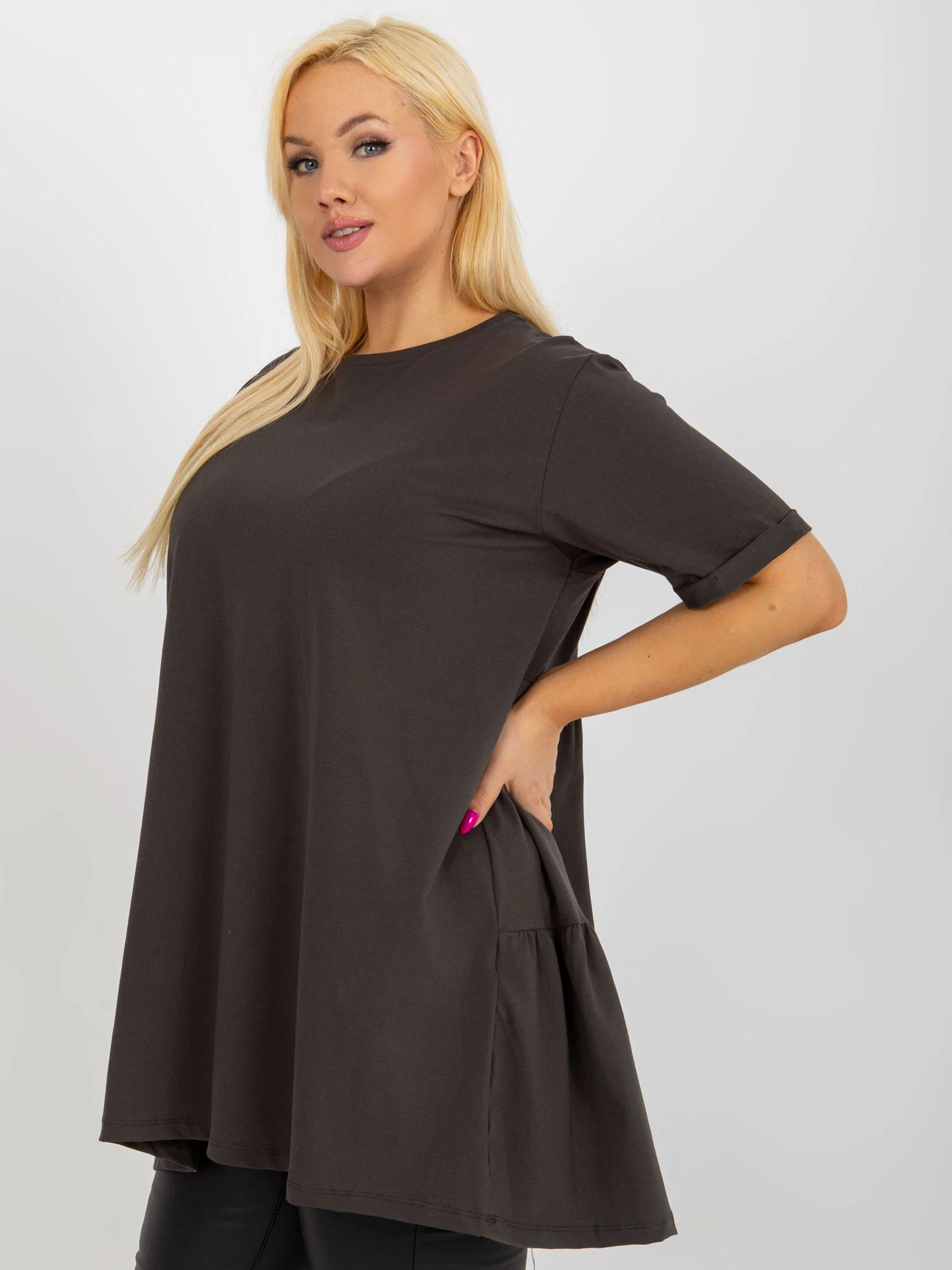 Wymiary bluzki w rozmiarze one size mierzone na płasko: szerokość pod pachami - 62 cm, długość całkowita - 83 cm.