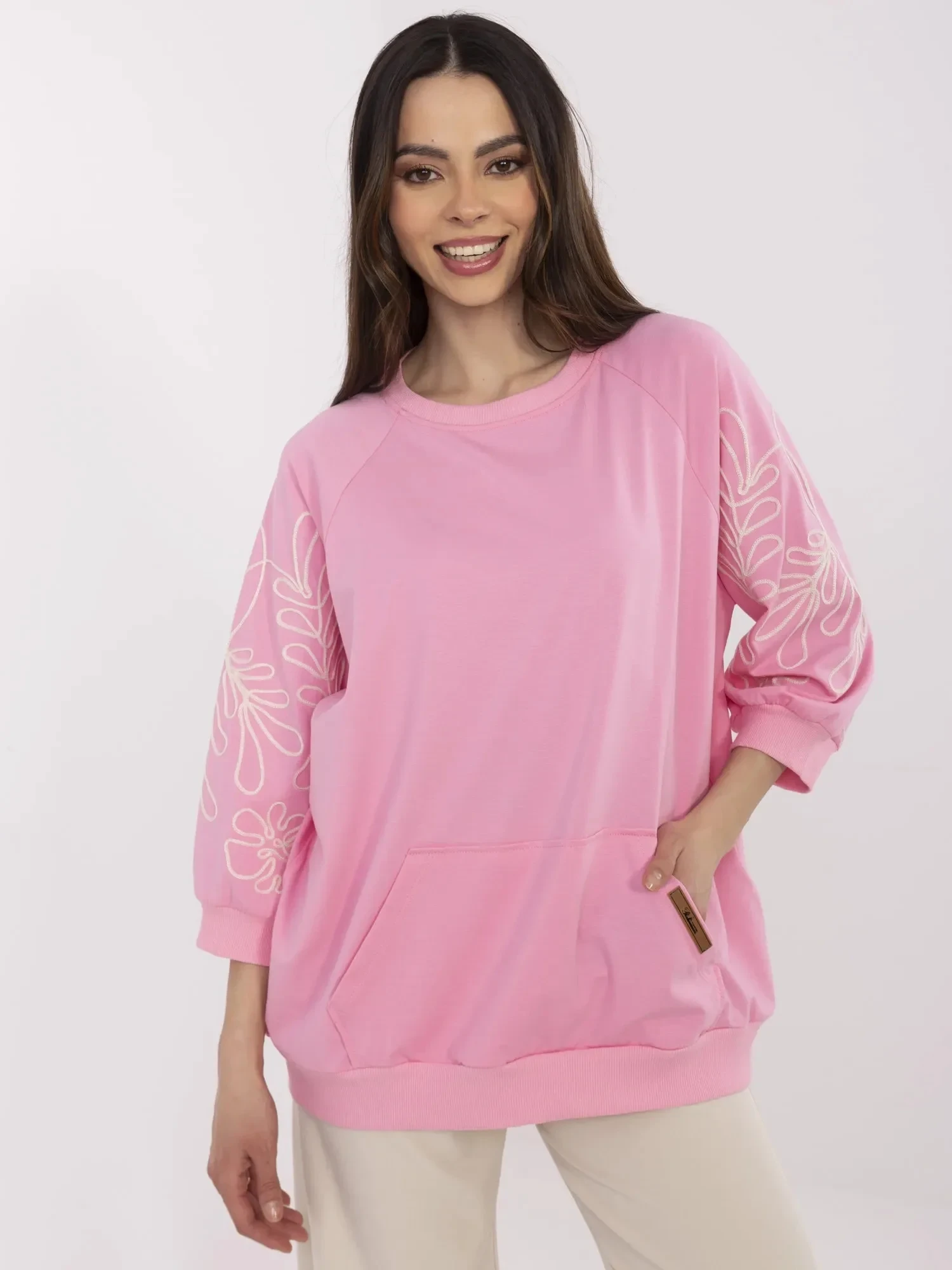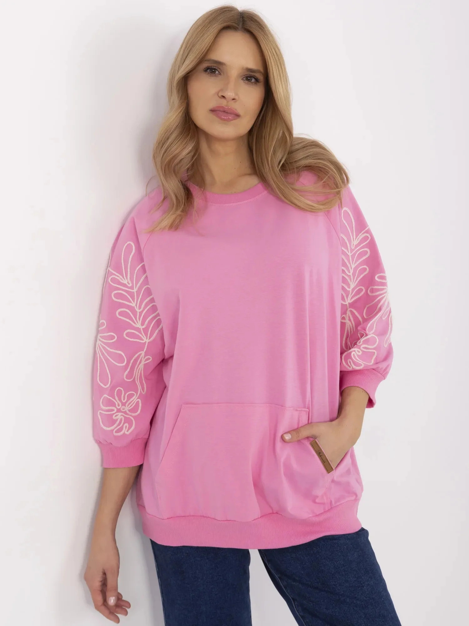 Wymiary bluzy w rozmiarze one size mierzone na płasko: szerokość bluzy pod pachami - 64 cm długość rękawa - 29 cm (od pachy), szerokość w biodrach - 48 cm, długość bluzy - 67 cm.