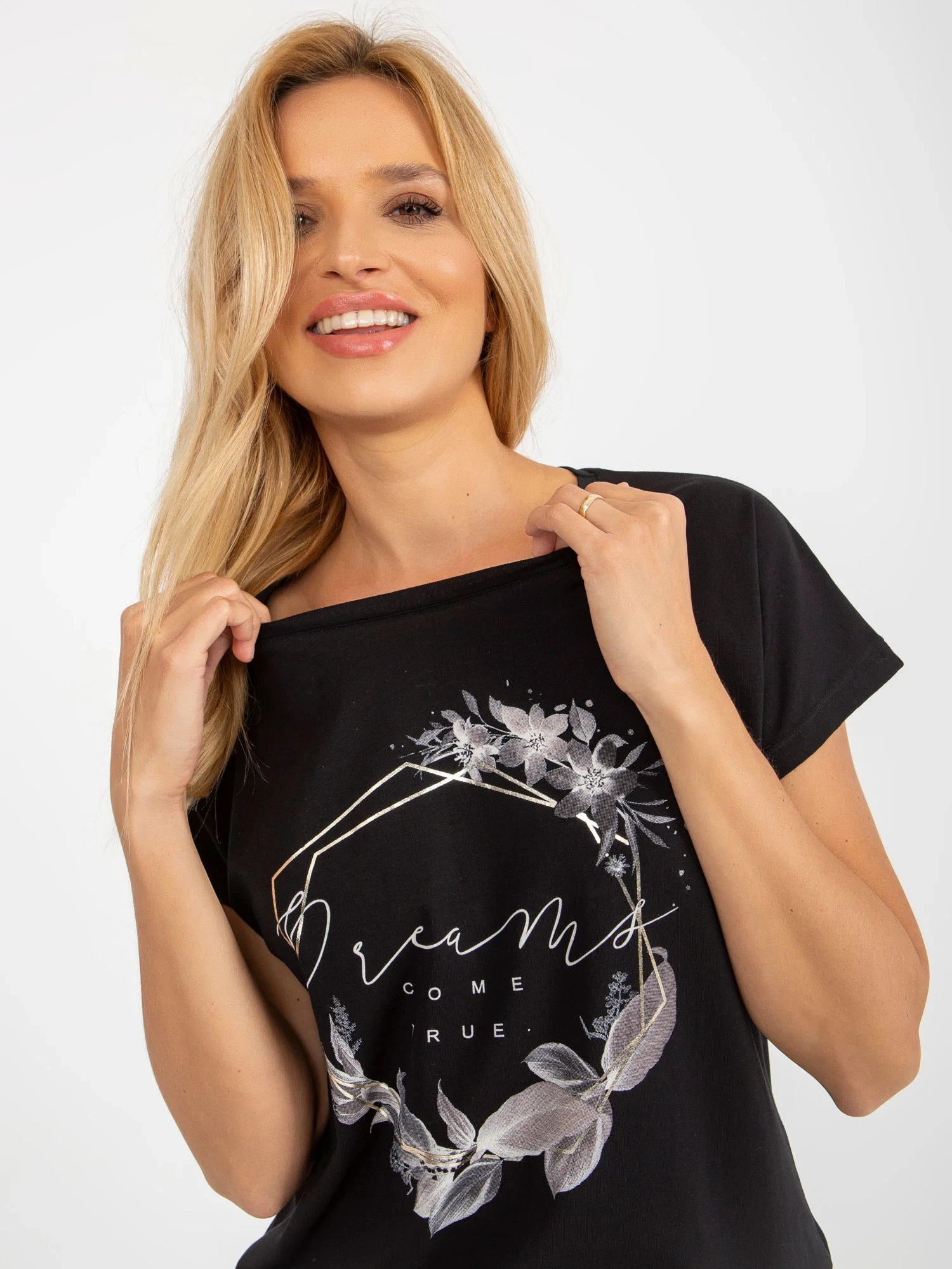 Czarna codzienna bluzka z nadrukiem RUE PARIS .