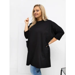 Wymiary bluzki w rozmiarze one size mierzone na płasko: szerokość pod pachami - 83 cm, szerokość na dole - 79 cm, długość rękawa - 44 cm, długość całkowita - 87 cm.