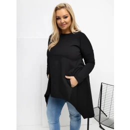 Wymiary bluzki w rozmiarze one size mierzone na płasko: bluzka: szerokość pod pachami - 59 cm, długość rękawa - 43 cm, długość całkowita - 75 cm (przód), długość całkowita - 93 cm (tył), szerokość na dole - 88 cm.