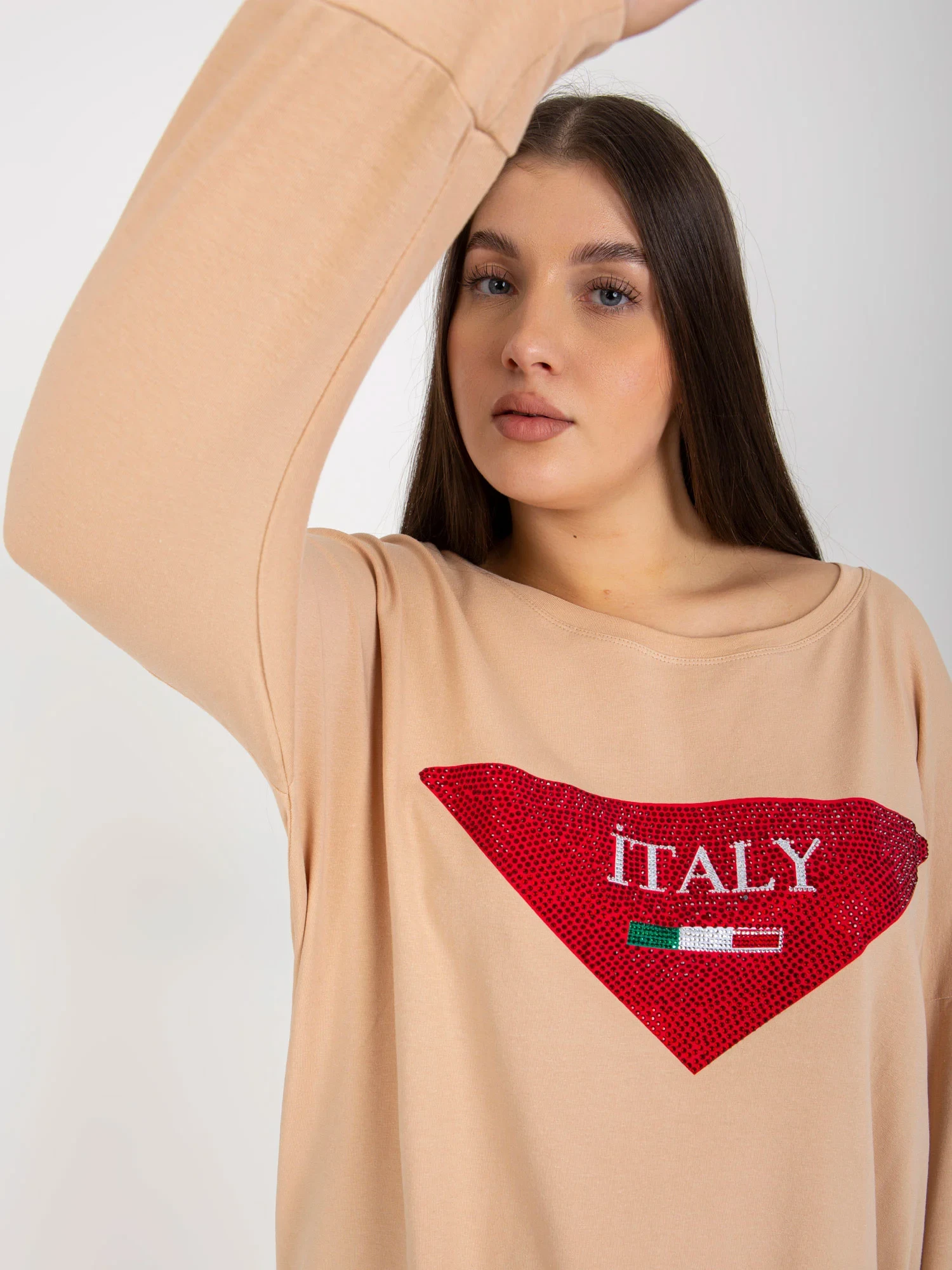 Beżowa bluzka plus size z bawełny.