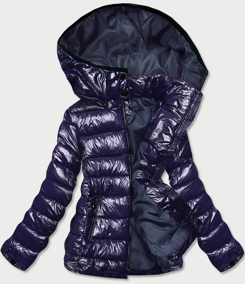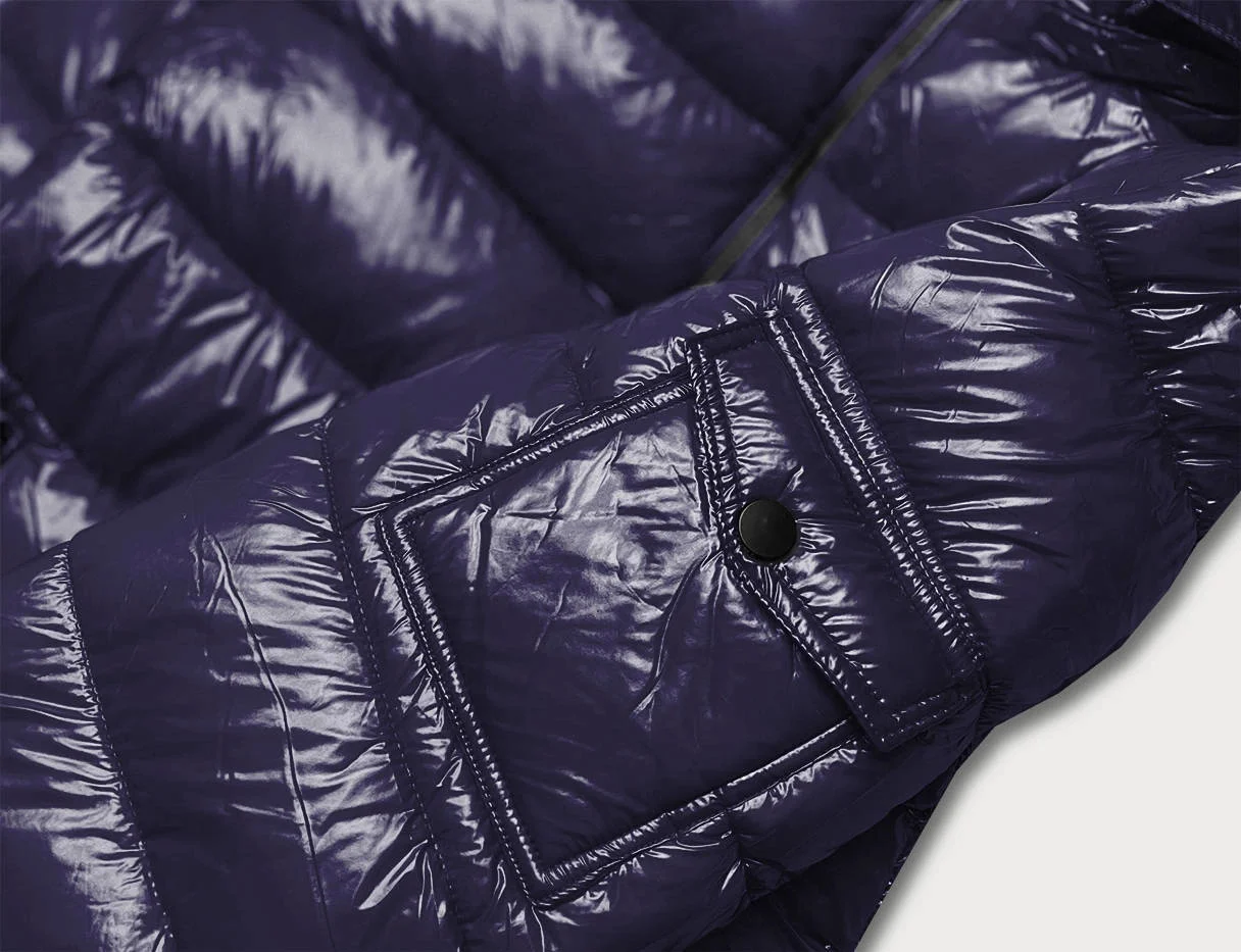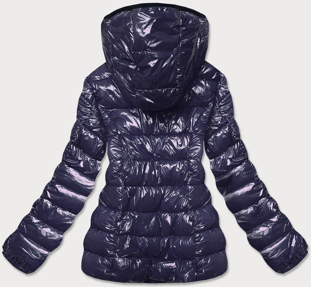 BŁYSZCZĄCA DAMSKA KURTKA ZIMOWA PUCHOWA GRANATOWA (B9583-3)
