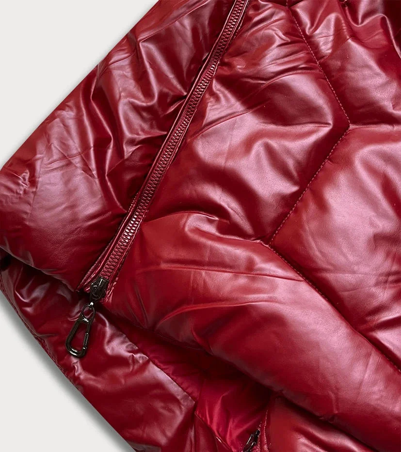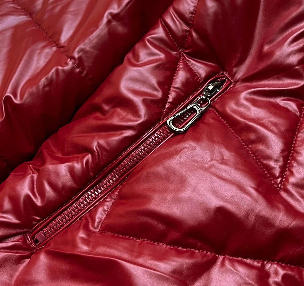 BŁYSZCZĄCA KURTKA ZIMOWA DAMSKA CZERWONA (M-21008)