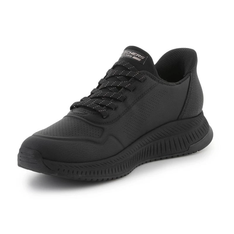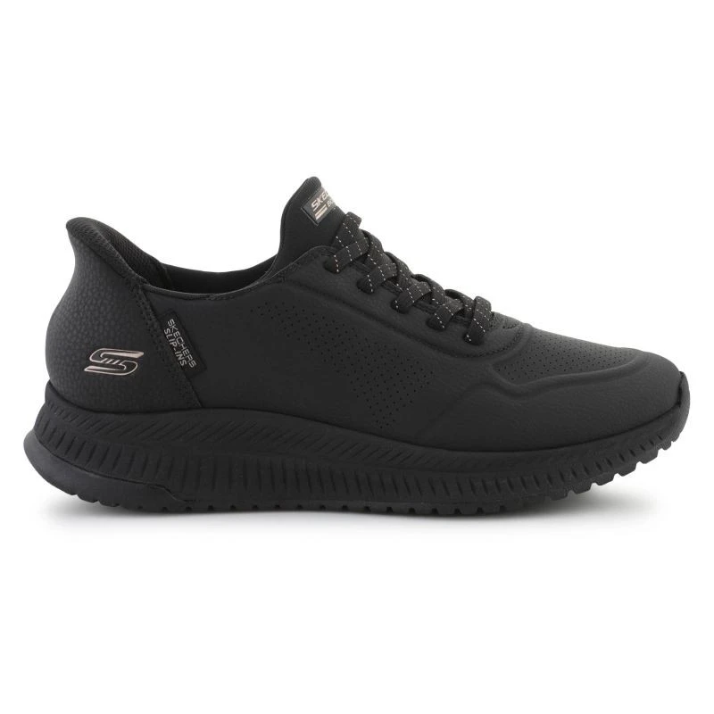 Skechers Slip-Ins: BOBS Squad 4 - Key Look 117740-BBK Black je pohodlná nazouvací dámská obuv určená pro každodenní pohodlí. Svršek je vyroben z kvalitního syntetického materiálu s přidanou vzdušnou textilní síťovinou pro odolnost, pohodlí a stabilní střih.