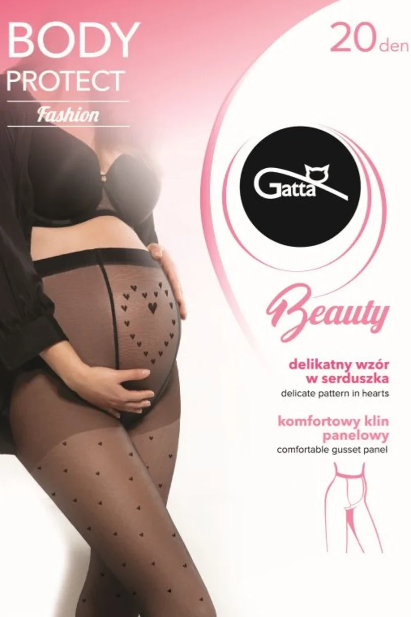 Těhotenské punčochové kalhoty Gatta Body Protect Beauty 20 denier jsou kombinací pohodlí a jemné ženskosti. Byly navrženy s ohledem na budoucí maminky, dokonale se přizpůsobí měnící se siluetě a poskytují oporu a pohodlí v oblasti břicha. Jemný srdíčkový vzor dodává šarm a dělá každodenní styling jedinečným. 20 denier elastická příze a panelový klín zaručují dokonalé přizpůsobení a pohodlí po celý den. Jedná se o ideální volbu pro těhotné ženy, které se chtějí cítit krásně a pohodlně.