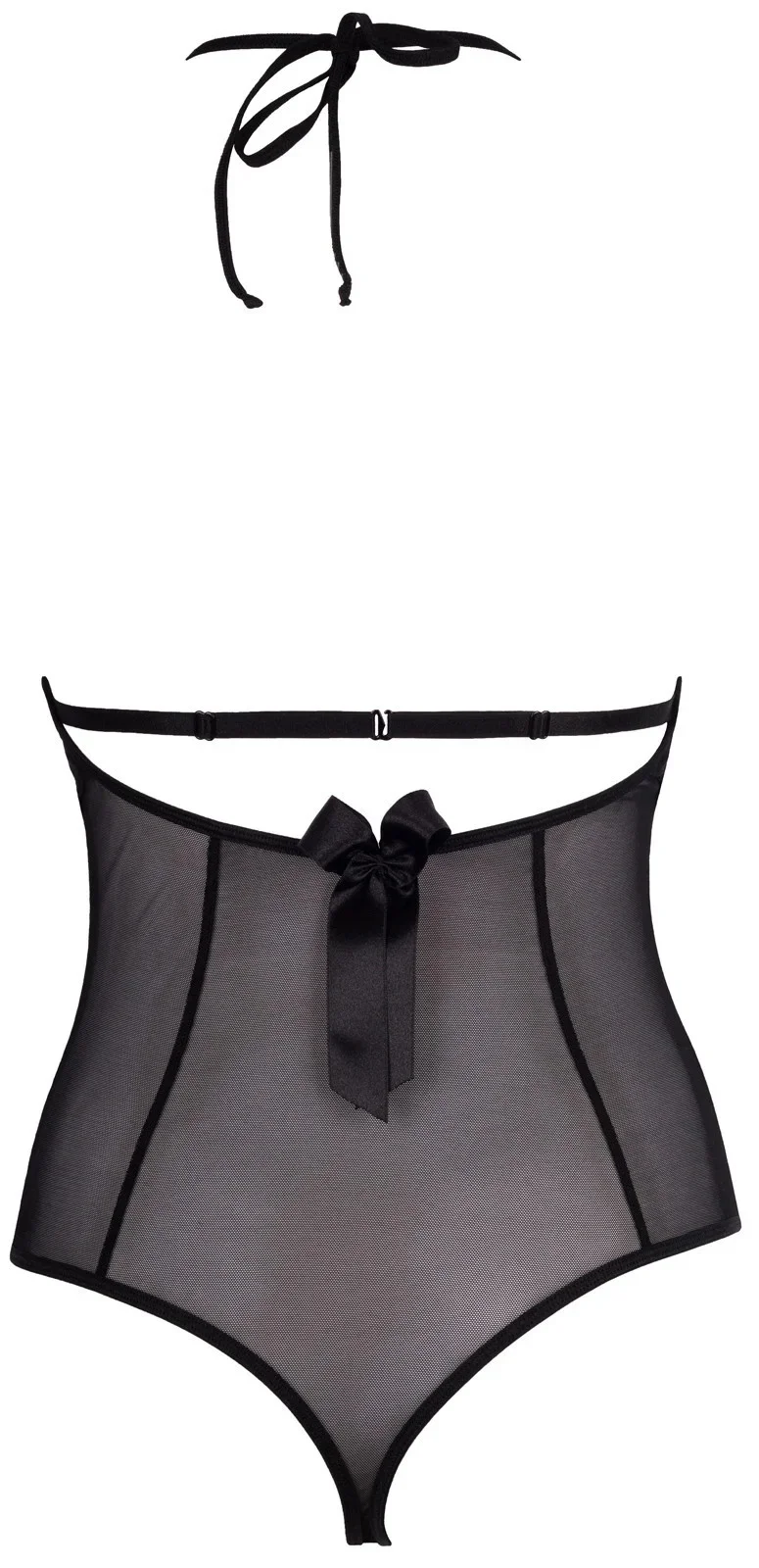 Černé romantické body Irresistible V-6690 je kombinací klasické černé barvy a jemného, ale zajímavého zdobení. Krajkové prošívání vám umožní vychutnat si pohled na hladkou pokožku, zatímco ženský vzor a saténové mašličky podtrhují svůdnost tohoto modelu. Model se zavazuje za krkem a zapíná se v rozkroku a na zádech. bez drátů
