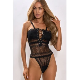 Černé krajkové dámské body NEW DAFNE je nabídkou pro ženy, které oceňují výraznou eleganci a jemnou smyslnost. Model kombinuje jemně zdobenou krajkou s efektním šněrováním vpředu, vytvářející ženský a charakteristický vzhled. Pečlivě vybrané detaily zdůrazňují siluetu, zatímco klasická černá barevnost dodává hloubku a nadčasový šarm. Konstrukce body byla navržena tak, aby krásně vystavovala pas a poprsí. Průhledné vložky s geometrickým vzorem přinášejí lehkost a jemnost, zachovávajíce jednotnost celé kompozice. Nastavitelné ramínka umožňují ideální přizpůsobení modelu postavě, zajišťují pohodlné nošení a dokonalé usazení. Body NEW DAFNE je skvělou volbou jak na zvláštní příležitosti, tak na večery, kdy chcete vypadat krásně a sebevědomě. Osloví vás jak smyslné prádlo, tak výrazný prvek stylizace pod sako, přidávající vášmu outfitu tóny elegantní dravosti. Každý model Pure Sin je vyráběn z vysoce kvalitních materiálů, s důrazem na nejmenší detaily, perfektní přizpůsobení ženské siluetě a precizní dokončení. Je to prádlo, které okouzluje tvarem a zajišťuje pohodlí při nošení, protože smyslnost si zaslouží dokonalé provedení.
