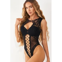 Černé dámské bodystocking BUTIQUE NIGHT spojuje luxusní krajku a odvážnou smyslnost. Model BUTIQUE NIGHT je nabídkou pro ženy, které chtějí vyniknout prádlem plným charakteru. Vyrobeno z černé krajky s síťovými vložkami jemně zdůrazňuje siluetu, spojuje eleganci s dravým ženským kouzlem. Výstřih na dekoltu a široká ramínka zdůrazňující linii ramen a prsou vytvářejí efektní a tajemný výstřih. Elastické síťové vložky vpředu a po stranách opticky zúžují pas a dodávají lehkost. Zadní část ve stylu high-leg s ažurovým motivem exponuje hýždě a dodává smyslný charakter. BUTIQUE NIGHT je body vytvořené pro výjimečné smyslné, odvážné a luxusní okamžiky. Skvěle poslouží jak jako svádějící prádlo, tak jako prvek budoárového stylu.