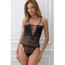 Tělo DAFNE okouzluje vzhledem připomínajícím smyslný korzet klasické ženské spodní prádlo, které dodává sebevědomí a sexualitu. Jemná krajková květinová krajka krásně zdůrazňuje pas a boky, dávající postavě štíhlejší vzhled, a sexy šněrování v oblasti prsou přitahuje pohledy a rozvíjí představivost. Dokonalý střih těla zdůrazňuje ženské tvary, inspirující k intimním okamžikům, a hluboká černá luxusní krajka dělá, že se každá žena v něm cítí jako milion dolarů. Nastavitelná ramínka a elastický materiál zaručují perfektní přizpůsobení bez ohledu na postavu, poskytující pohodlí a maximální ženskost. Vyberte si tělo DAFNE, probuďte v sobě bohyni a čerpejte ze života naplno!