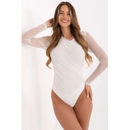 Elegantní body vyrobené z jemné síťoviny, které přitahují pozornost efektní aplikací se svítícími puntíky. Model standardní délky skvěle padne a zdůrazní vaše přednosti. Kulatý výstřih a dlouhé rukávy dodávají celku klasický a zároveň rafinovaný charakter. Jemné zástřihy přidávají bodu eleganci a lehkost. Vnitřek modelu je vybaven podšívkou, s výjimkou rukávů, co zajišťuje pohodlí nošení a estetické dokončení. Materiál z kombinace polyesteru a viskózy je příjemný na dotek a dobře padne na tělo. Praktické zapínání na háčky v rozkroku zvyšuje pohodlí užívání. Body se skvěle hodí do večerních a elegantních stylizací.