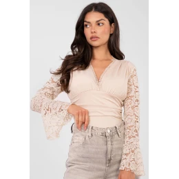 Elegantní body vyrobené z kombinace polyesteru a elastanu, spojující pohodlí s rafinovaným stylem. Model s standardní délkou a výstřihem do srdce zdůrazňuje siluetu a dodává celku decentní ženský charakter. Dlouhý, rozšířený rukáv s krajku přidává lehkost a eleganci, a ozdobné záhyby na materiálu na přední straně tvoří stylový detail, který vystavuje body. Vložené, ztužené košíčky a praktické zapínání na háčky zajišťují vysokou funkčnost, usnadňují oblékání a svlékání. Dominantní hladký vzor dělá z body univerzální kus, ideální jak na speciální příležitosti, tak pro elegantní každodenní outfit.