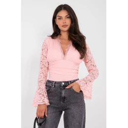Elegantní body vyrobené z kombinace polyesteru a elastanu, spojující pohodlí s rafinovaným stylem. Model s standardní délkou a výstřihem do srdce zdůrazňuje siluetu a dodává celku jemně ženský charakter. Dlouhý rozšířený rukáv s krajkou dodává lehkost a eleganci, a ozdobné zástřihy na materiálu na přední straně jsou stylovým detail, který body vyzdvihuje. Vestavěné, zpevněné košíčky a praktické zapínání na háčky zajišťují vysokou funkčnost, usnadňující oblékání a svlékání. Dominantní hladký vzor dělá z body univerzální kousek ideální jak na speciální příležitosti, tak do elegantních každodenních outfitů.