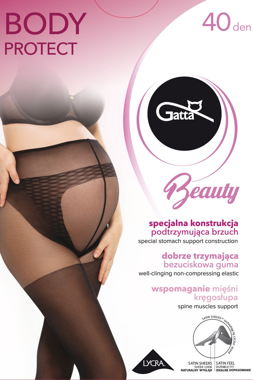 Punčochové kalhoty BODY PROTECT20 DEN, 40 DEN pro těhotné ženy. Díky svému speciálnímu střihu a použití velice elastické příze Lycra Xceptionelle(r) jemně podpíPunčochové kalhoty rostoucí bříško aniž by ho stahovaly. Navíc jsou v oblasti beder zesílené a tím pádem odlehčují zádům a podpíPunčochové kalhoty svaly kolem páteře. Zakulacený klín vpředu umožňuje postupné roztahování kalhotkové části pro rostoucí bříško. Vysoko umístěná nestahující guma zajišťuje komfort a pohodlí pro budoucí maminku.