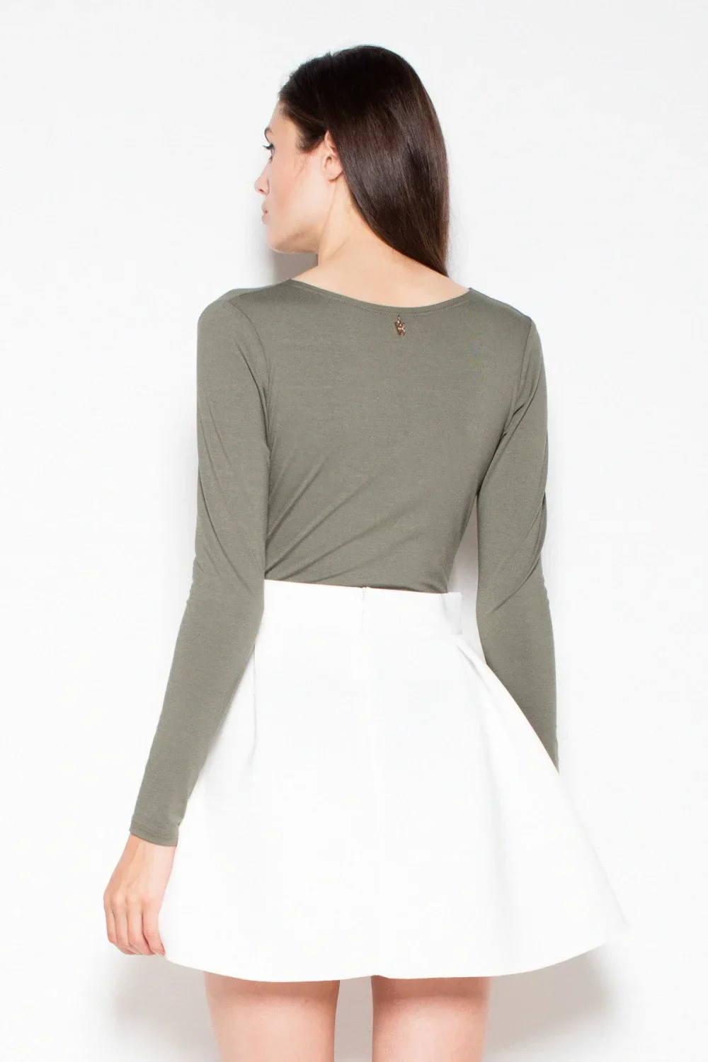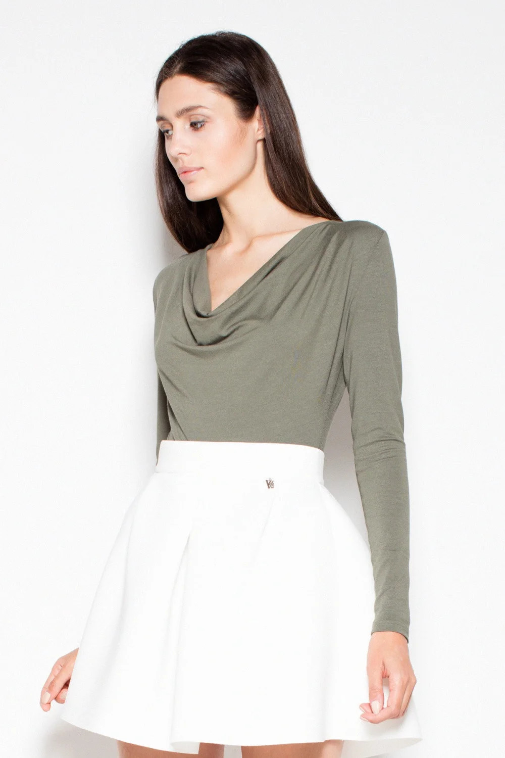 Přiléhavé body s dlouhými rukávy a efektním splývavým výstřihem. Model, který se dokonale hodí k těsným klasickým džínům.