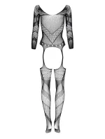 Bodystocking Esmeralda BEAUTY NIGHT FASHION - černá barva - tříčtvrteční rukávy - z průsvitné síťoviny - otevřený rozkrok