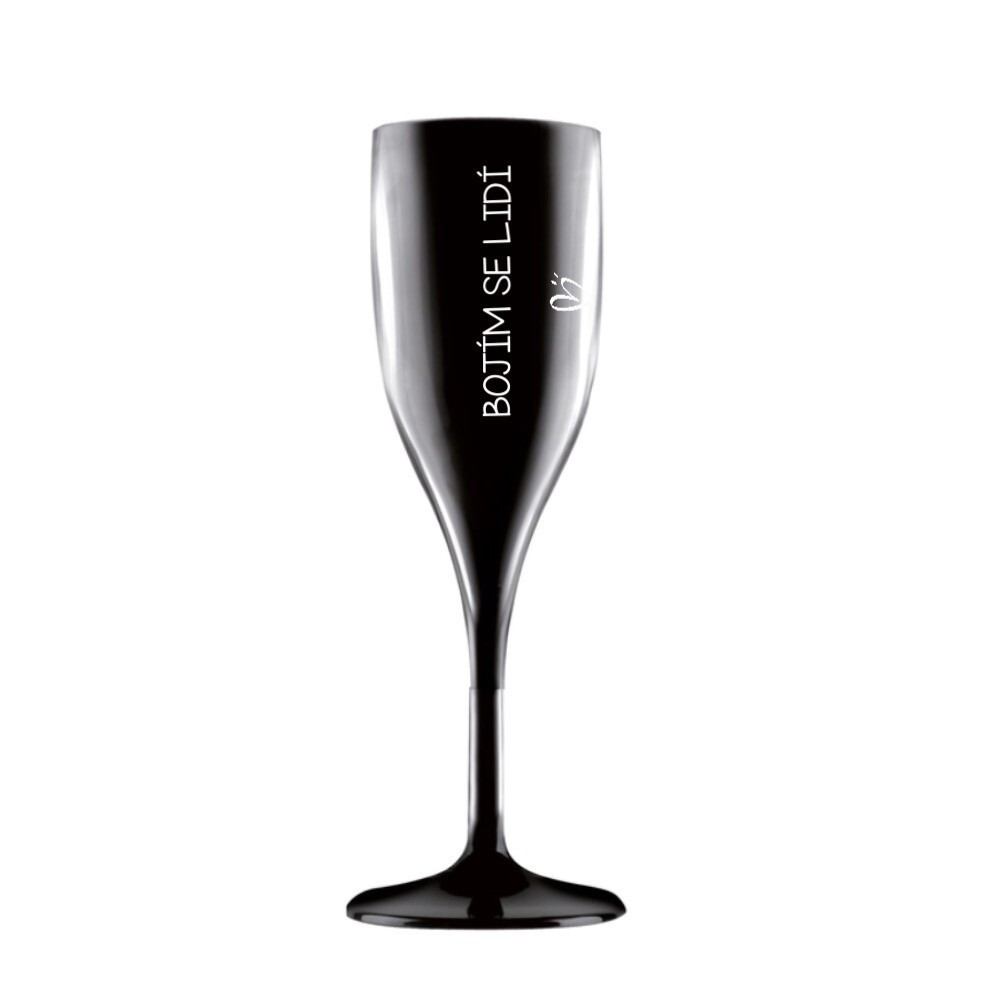 Bojím se lidí - černá nerozbitná prosecco sklenice 150 ml