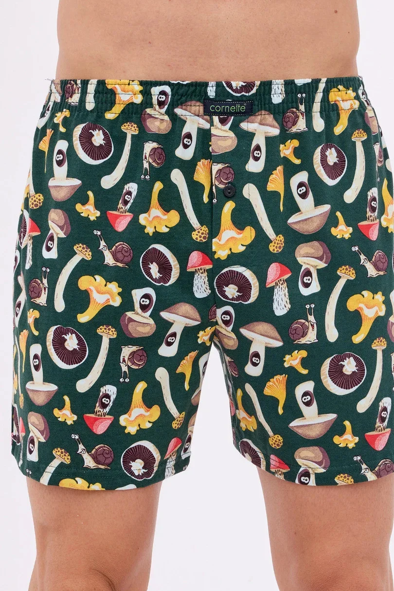 Bokserki męskie uszyte z wysokiej jakości wzorzystej bawełny. Wygodna guma w pasie obszyta bawełną. Rozporek zapinany na guzik. Pakowane w pudełko.