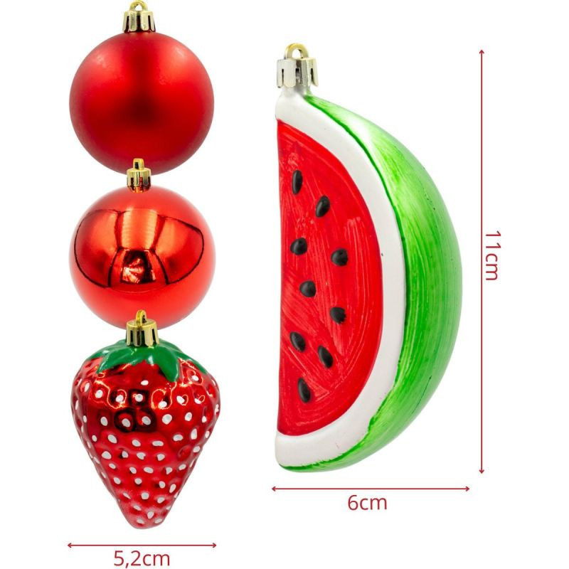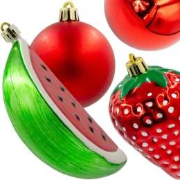 - mieszanka kulistych bombek z 2 w kształcie arbuza i 1 w kształcie truskawki