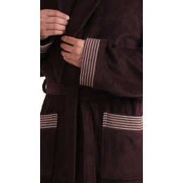 Luxusní župan Boston z bambusové viskózy se šálovým límcem a elegantními bordurami na rukávech a kapsách.