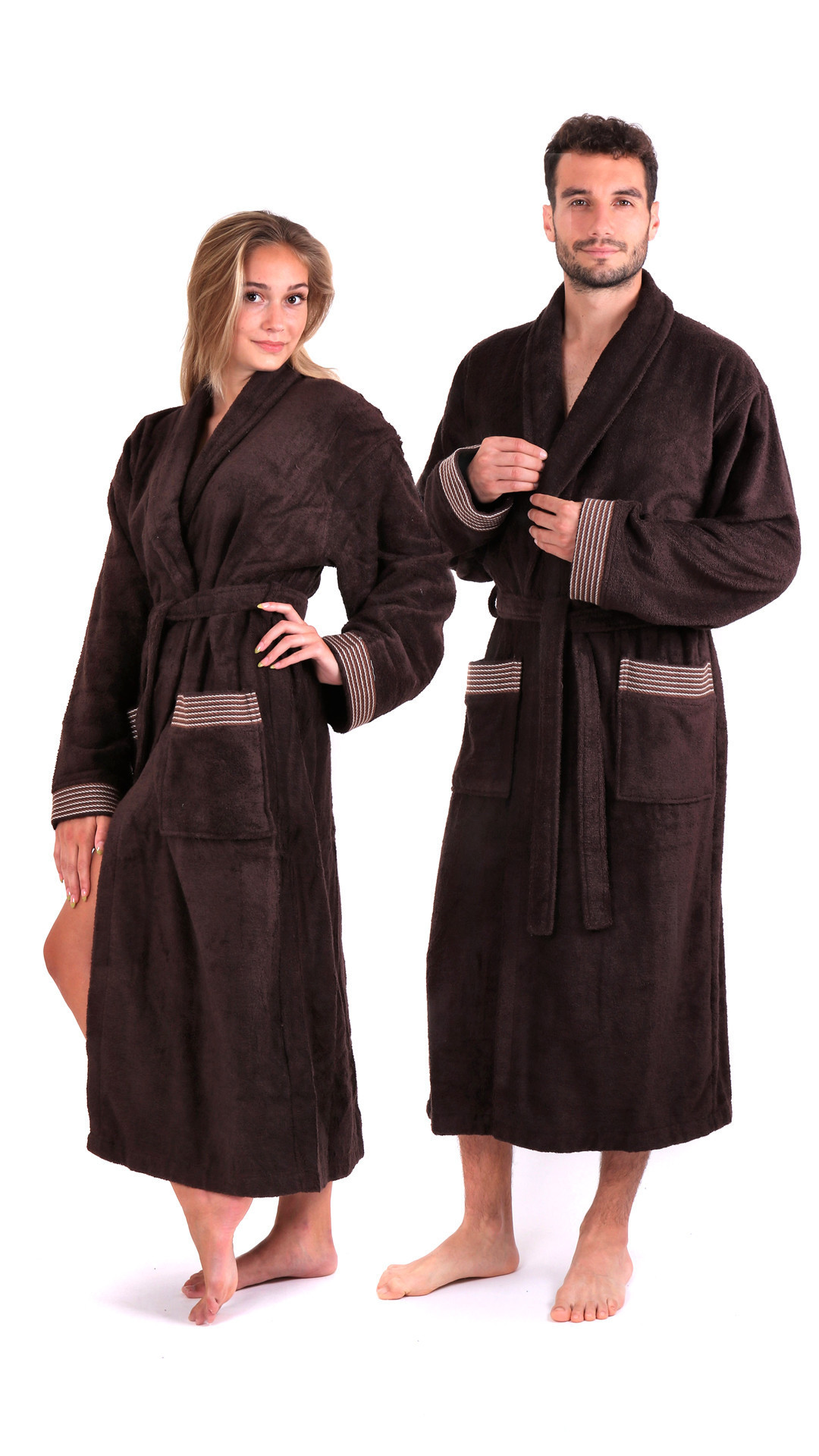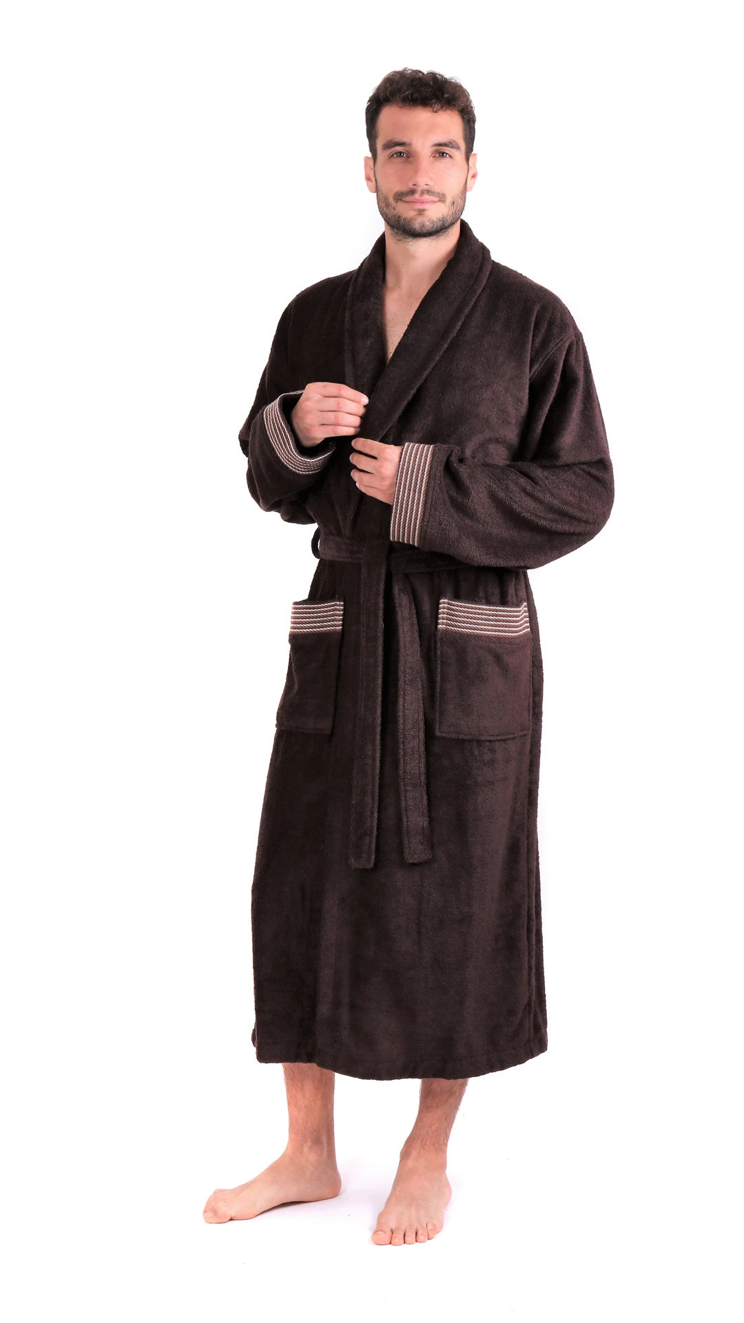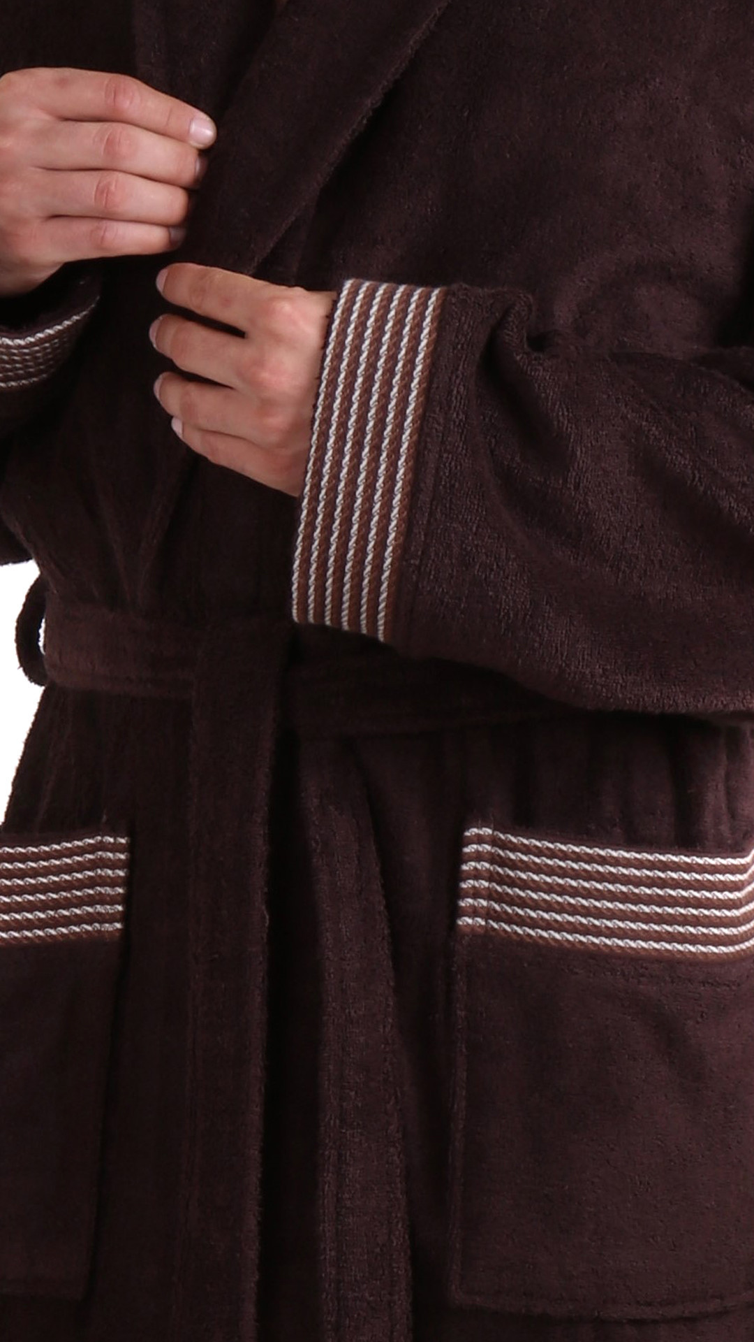 Luxusní župan Boston z bambusové viskózy se šálovým límcem a elegantními bordurami na rukávech a kapsách.