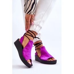Mimořádně pohodlné a módní dámské sandály byly vyrobeny z přírodní kůže. Šněrovací model se svrškem v délce nad kotníky. Sandály mají měkkou, koženou stélku. Sandály jsou posazeny na platformě a nízkém klínku. Tento styl se vám jistě zalíbí!