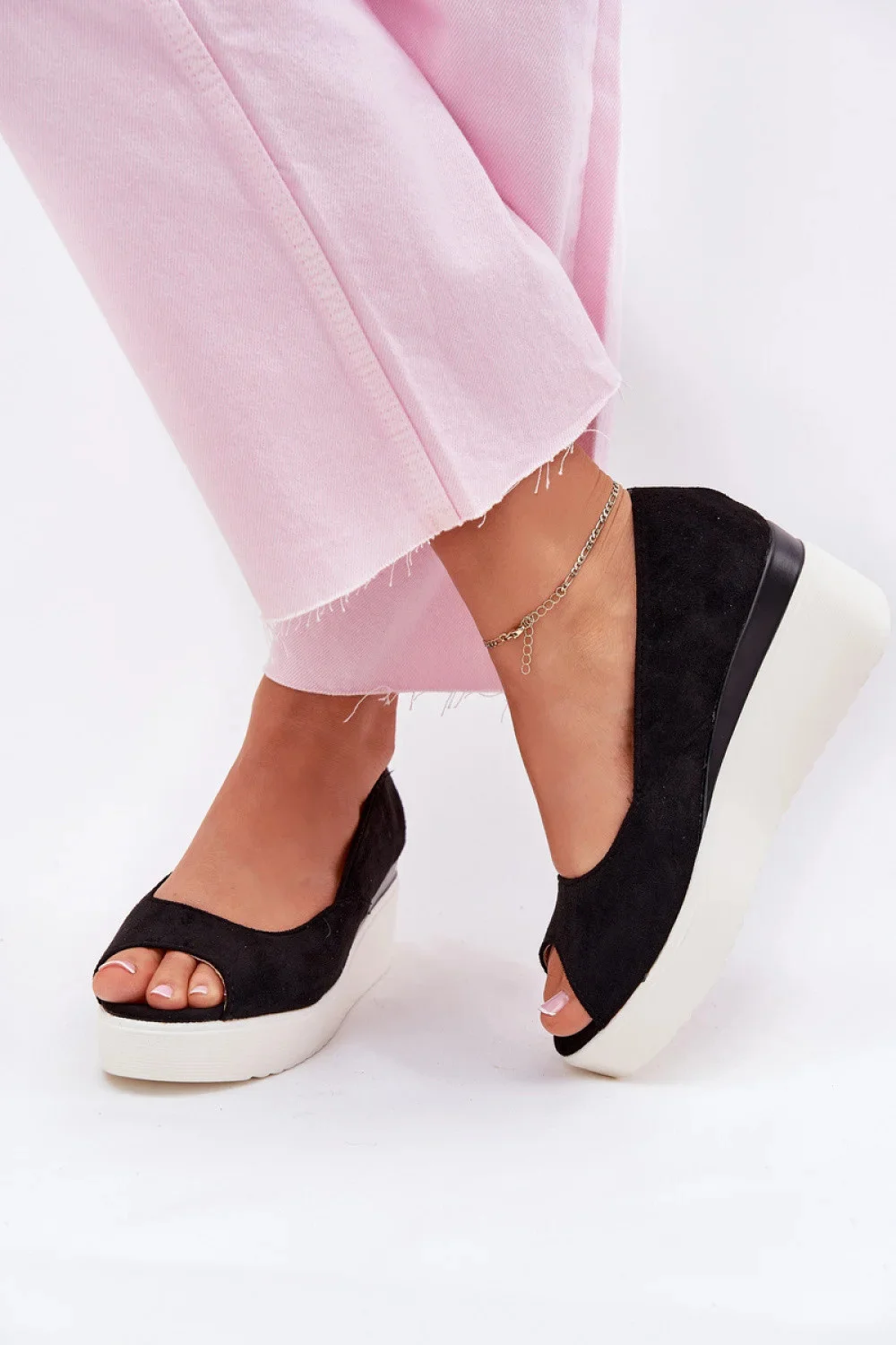 Dámské sandály vyrobené z ekologického semiše. Umístěné na klíně. Lehká konstrukce poskytuje pohodlí po celý den a klasický vzhled je ideální pro letní šaty, sukně a kalhoty. Ideální na teplé dny.