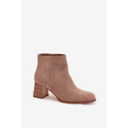 Botki Damskie Na Słupku Eko Zamszowe Beżowe Marilou
