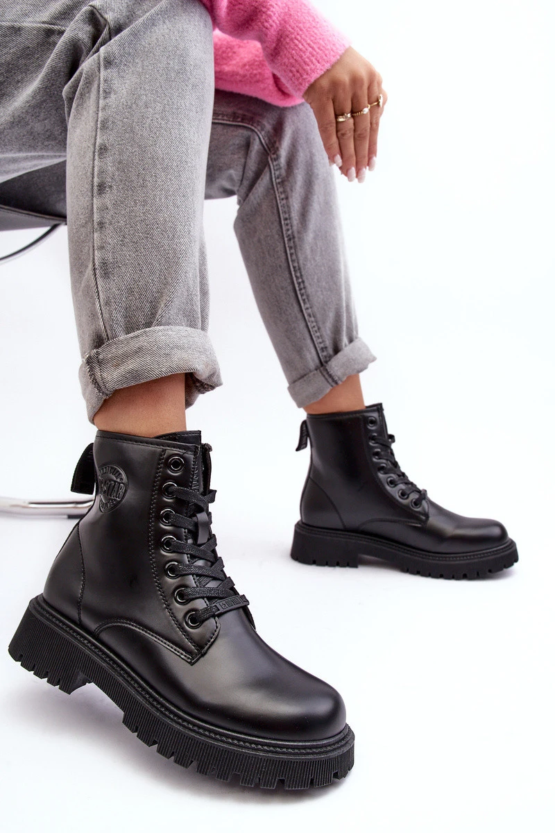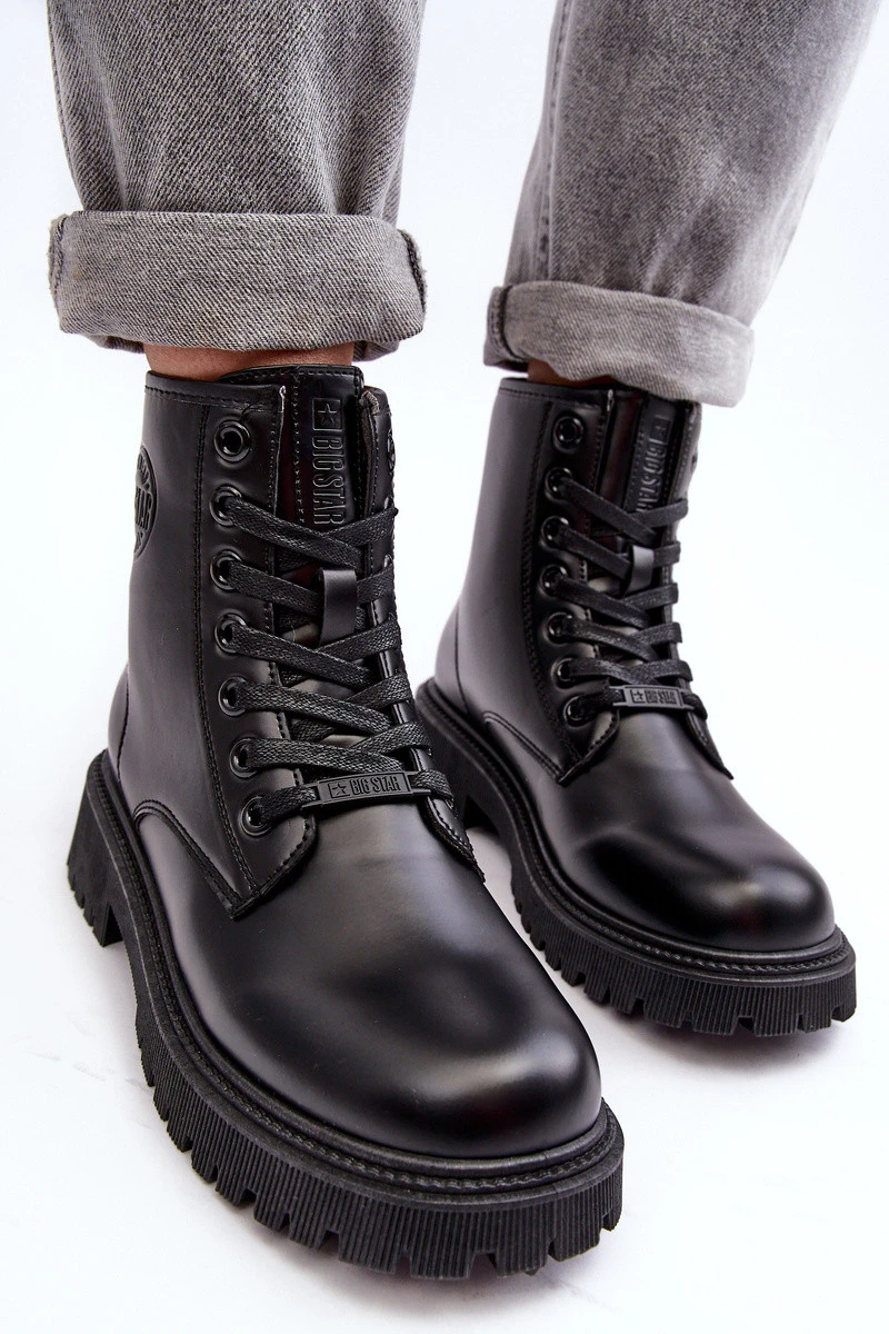 Botky Kožené Šněrovací Černé Big Star model 21636893 - Big Star Shoes