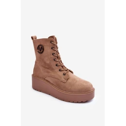 Boty vyrobené z ekologického semiše. Nastavené na platformě a klínku. Model je upevněn na zip po straně a má navíc šněrování. Střed je zateplený obuvnickou kožešinou. Špičky jsou zaoblené, špička je zesílená. Boční strana má dekorativní prvek. Tento model určitě obstojí ve mnoha stylizacích! Při výběru velikosti se řiďte tabulkou velikostí.