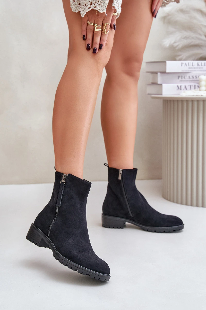 Botky Z Eko Semiše Na Plochém Podpatku Černé model 21676699 - Boto